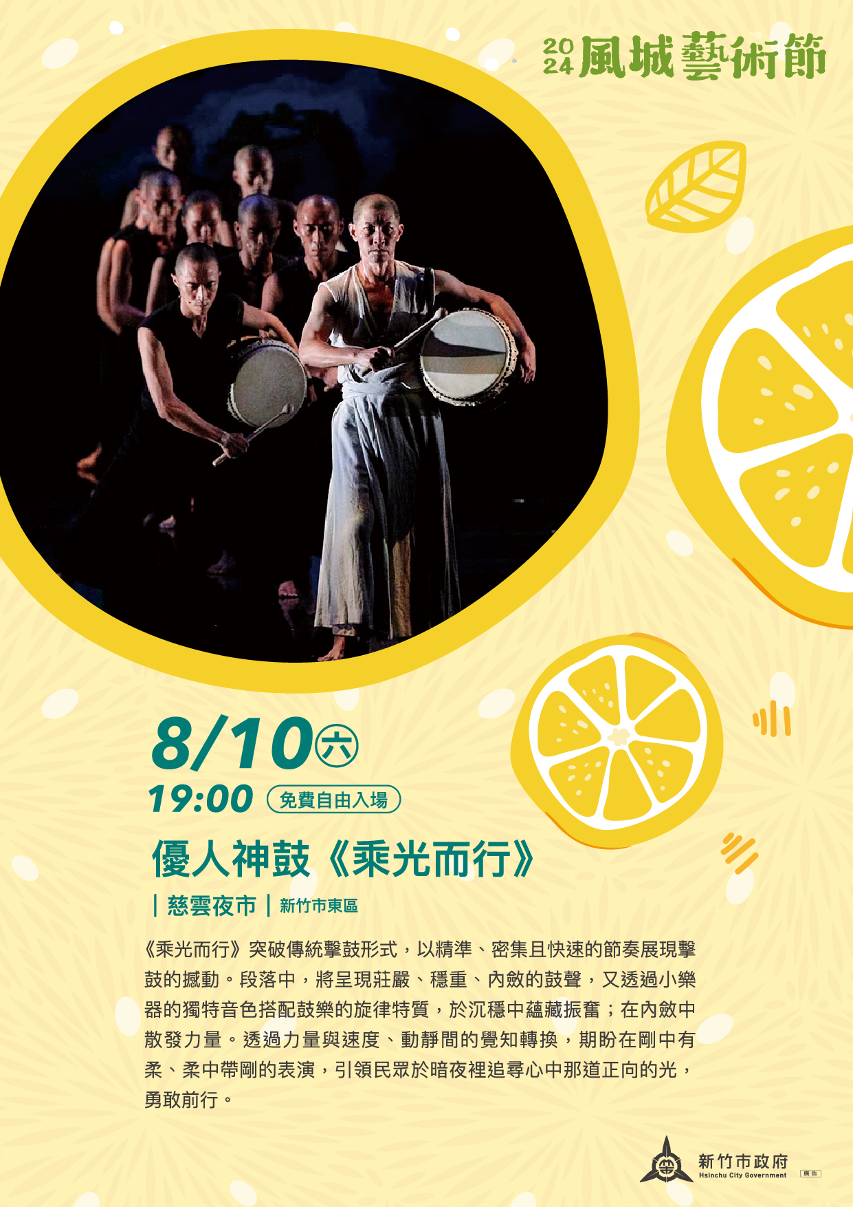 📌8/10(六)19:00,東區/慈雲夜市,優人神鼓《乘光而行》