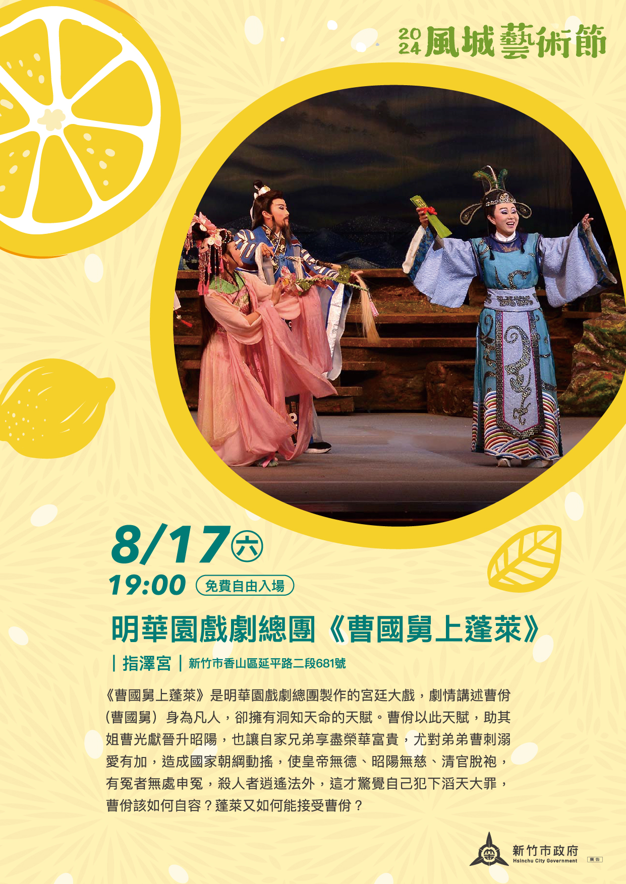 📌8/17(六)19:00,香山區/指澤宮,明華園戲劇總團《曹國舅上蓬萊》