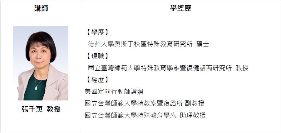 由師範大學特殊教育學系暨復健諮商研究所 張千惠教授講授「大腦性視覺損傷與功能性視覺評估」議題,從特教專長為我們解說大腦性視覺損傷孩童的學習處遇,以及如何透過功能性視覺評估了解孩童在實際日常生活中的能力表現。