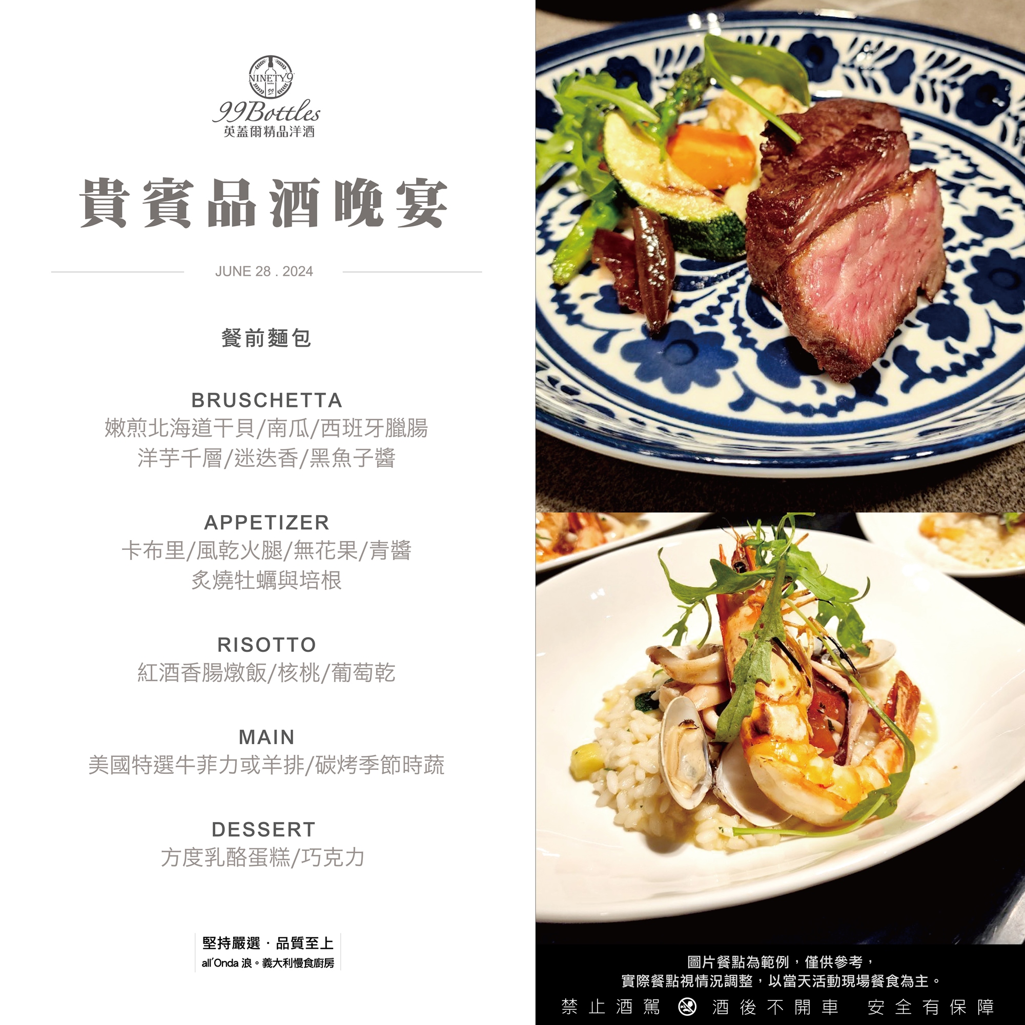此外,美食更是能與好酒相得益彰,特邀高雄人氣餐廳【all'Onda 浪。義大利慢食廚房】主廚依照酒單設計搭配,絕對能夠滿足您的味蕾,為您帶來非凡的品酒體驗!