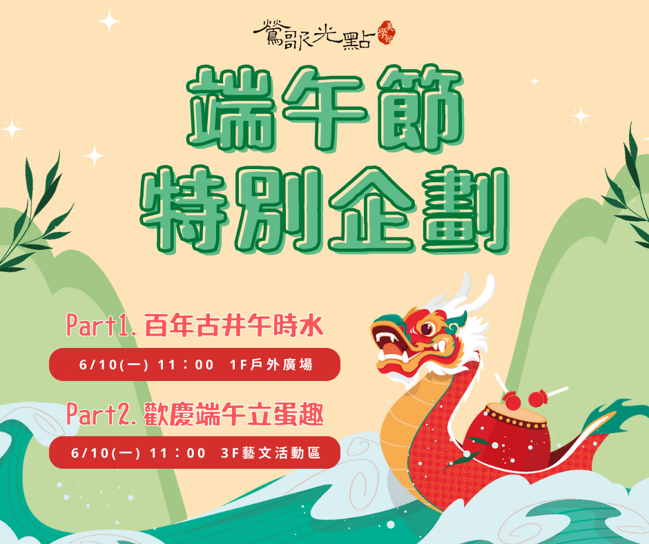🎉端午親子同樂日來啦!一起來鶯歌光點美學館過端午,體驗親自汲水和立蛋挑戰的樂趣!