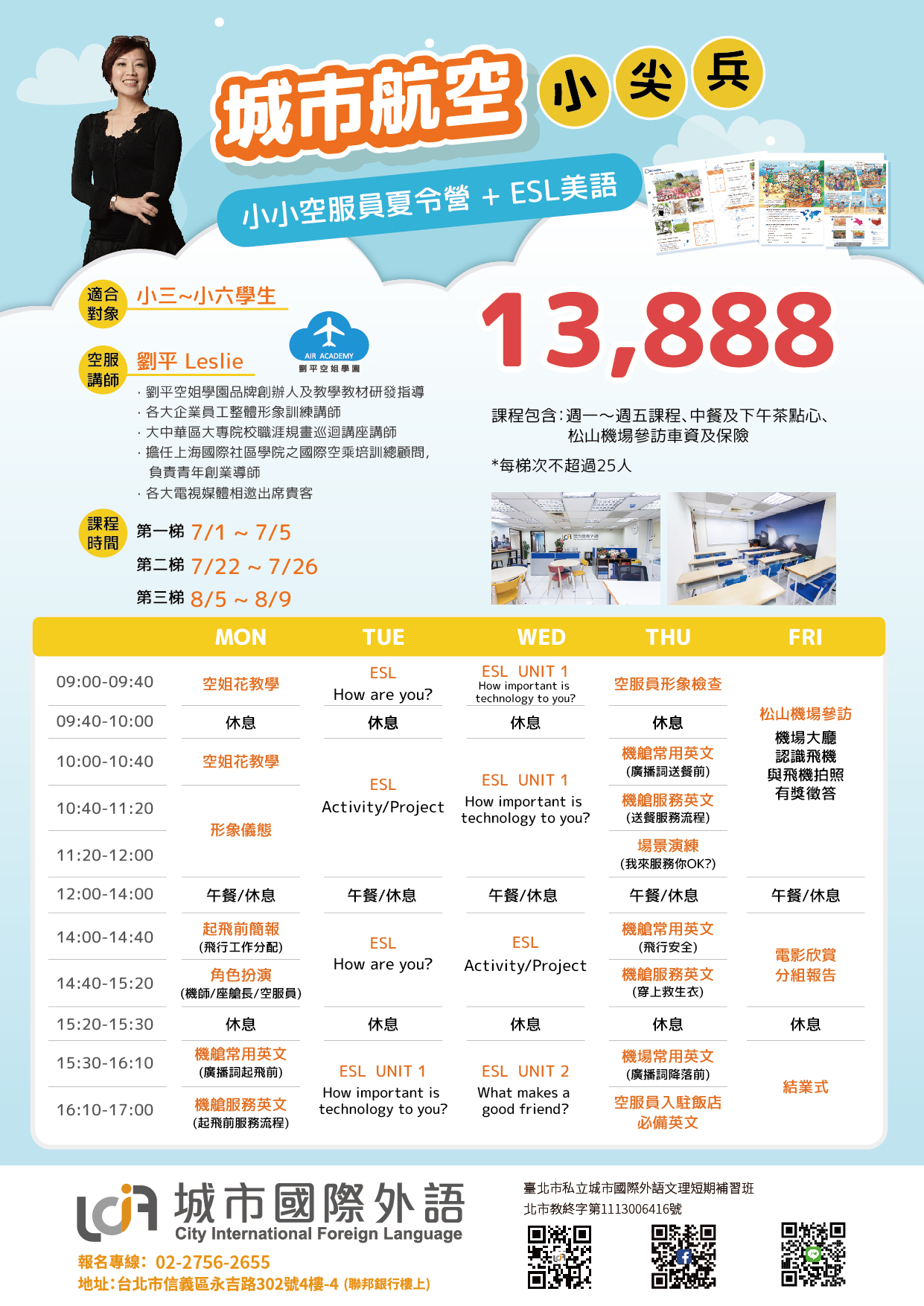 - 松山機場戶外教學觀摩:最後一天,孩子們將親身前往松山機場,觀摩航空運作,深入了解航空業。