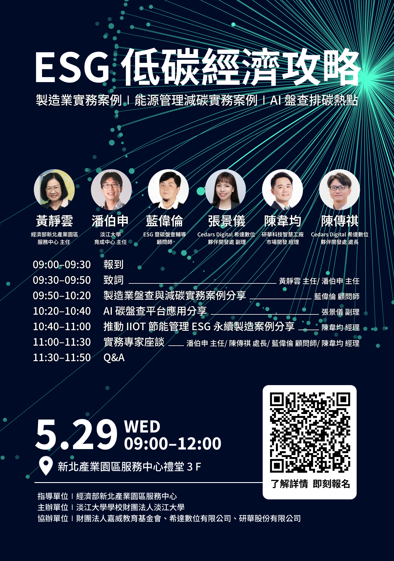 本次講座主題將圍繞製造業盤查與減碳實務分享,當日參與講座的企業,可填具表單,即獲得提供的企業碳諮詢或書面評估建議等限量服務 (名額有限,送完為止)。