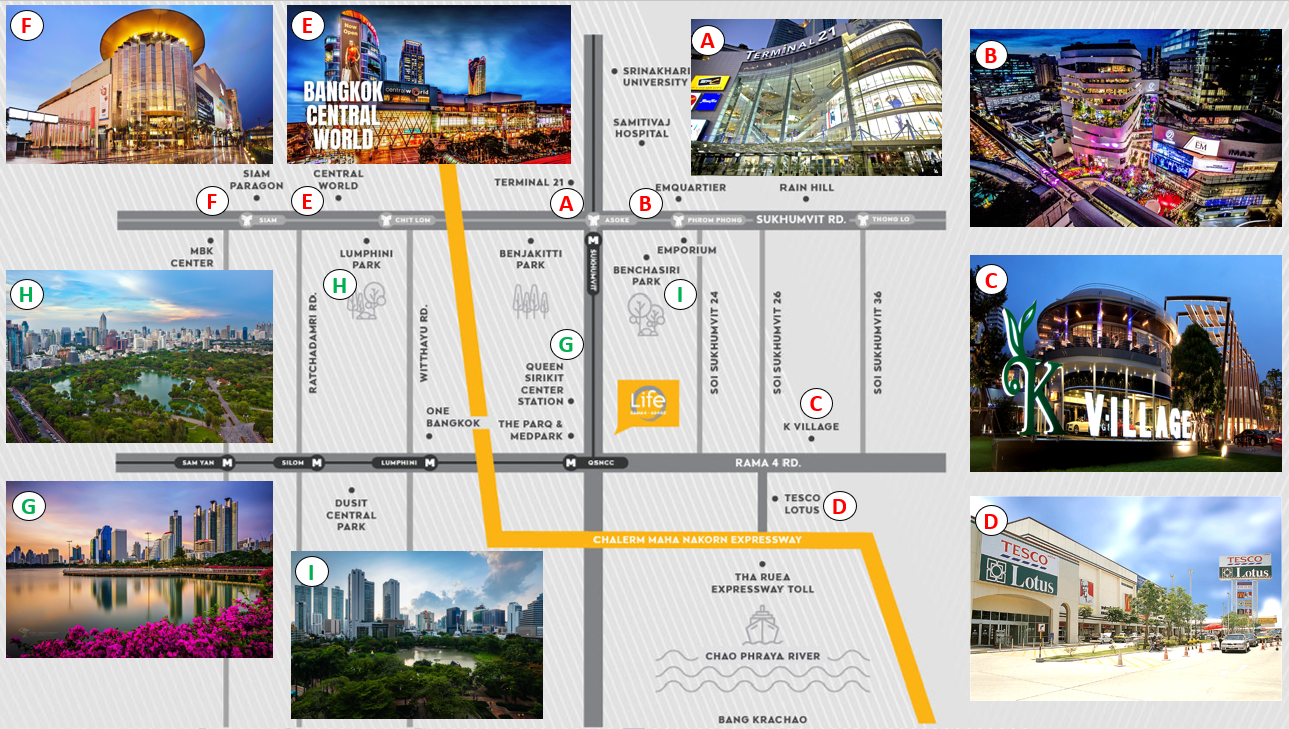 位於Life Rama4 Asoke 的 Rama4路上已於近年建成許多曼谷市中心的地標性建築物,其中就包含目前正在興建的One Bangkok 預計於2026年完工,完工後將會是未來曼谷的最高樓!