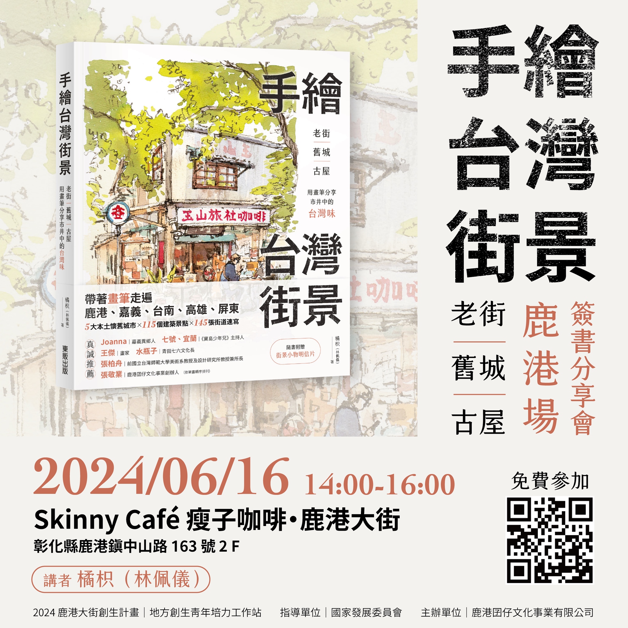 2024|06/16 橘枳將帶著新書《手繪台灣街景》,回到鹿港分享啦~