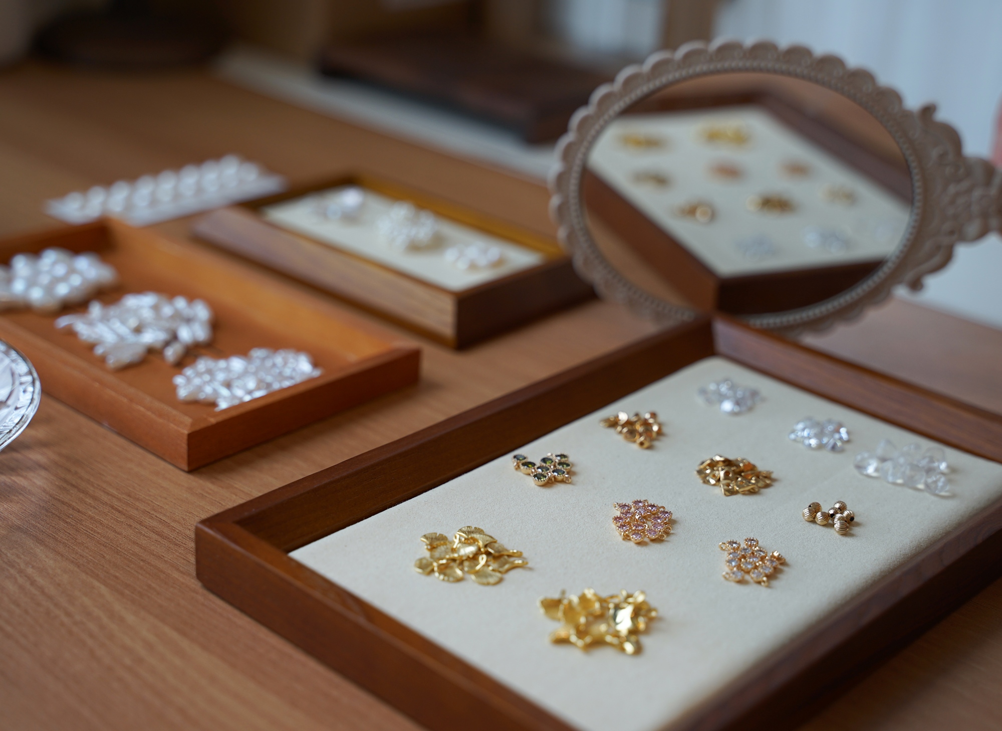 課程中會認識10種以上不同品類的天然珍珠、天然寶石、金屬材質和工具介紹,