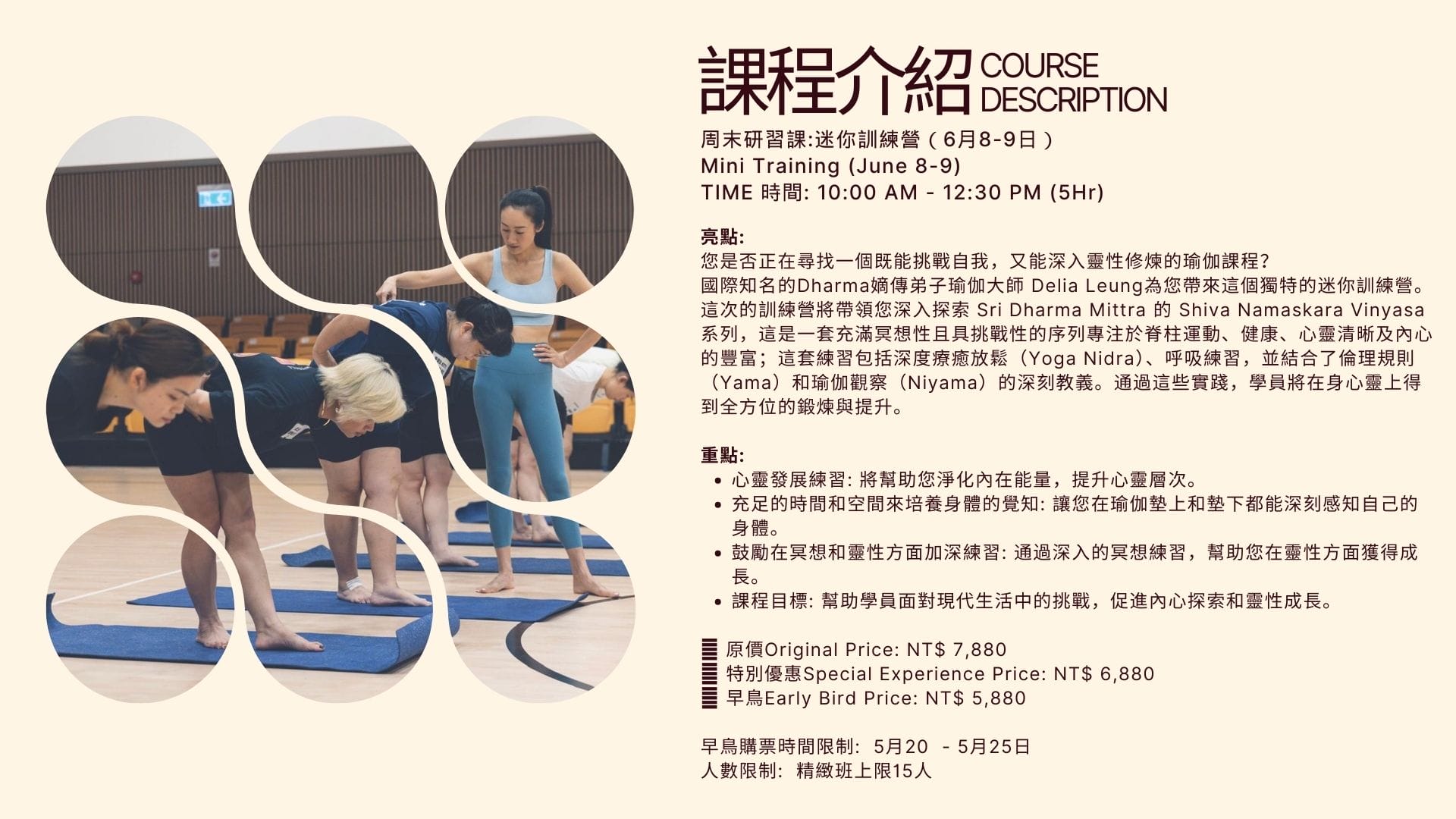 這個迷你訓練營是一個絕佳的機會,讓您在短時間內體驗到深度的瑜伽練習,並從中獲得身心靈的全面提升。無論您是希望提升自我練習的瑜伽愛好者,還是尋求更深靈性修煉的學員,這個課程都將為您帶來無與倫比的體驗。