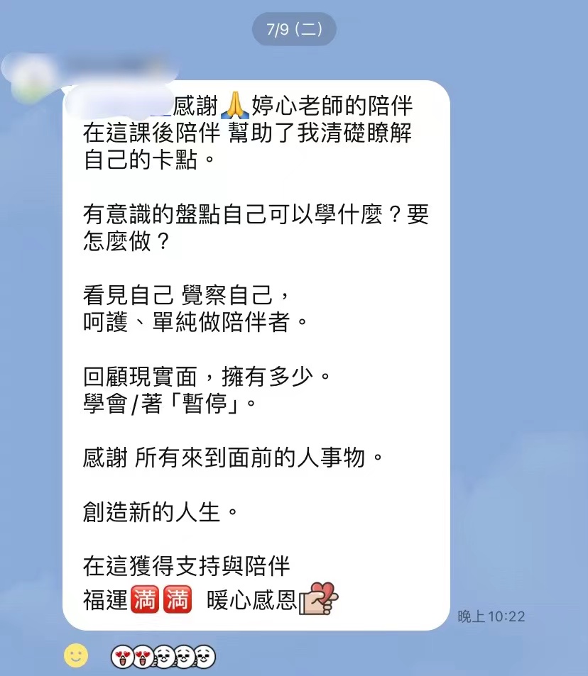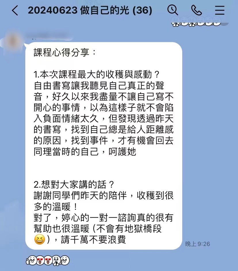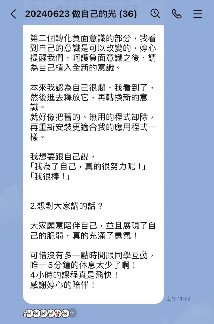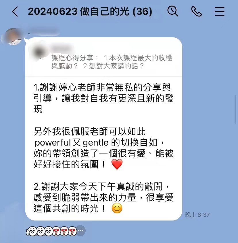 在課程當中,講師深度引導每位學員,進到更深的內在,發出每位生命的獨特光彩。