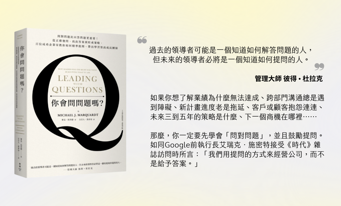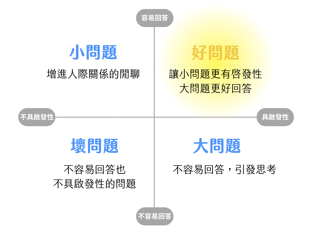 《你會問問題嗎?》書中提到:「想要深度理解一件事情,首先需要有深度的思考,而深度思考往往來自於一個好的、值得思考的問題。」