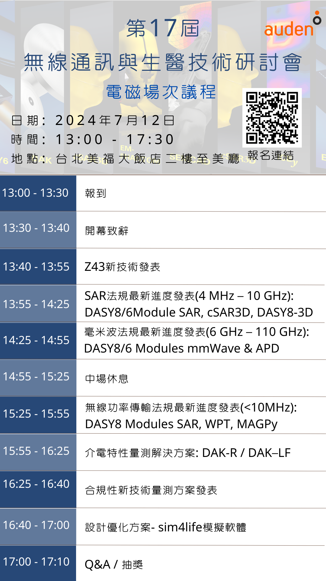 本次研討會分為兩個場次,分為電磁場次及生醫場次,邀請頂尖專家分享最新技術發展和法規趨勢。