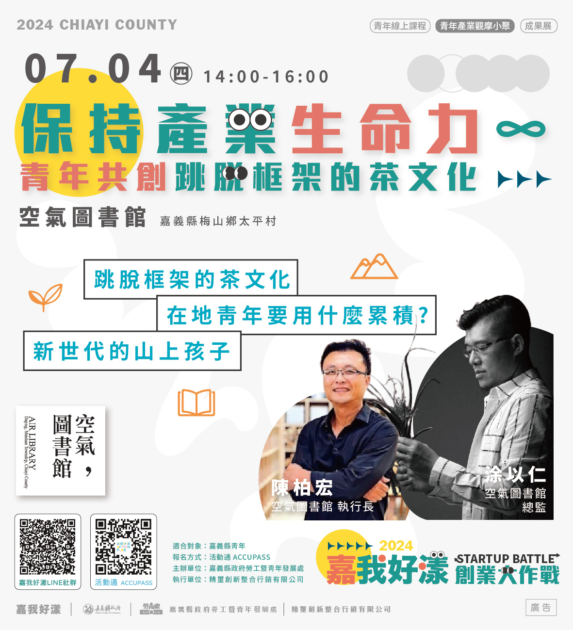 - 活動主題:保持產業生命力∞青年共創跳脫框架的茶文化