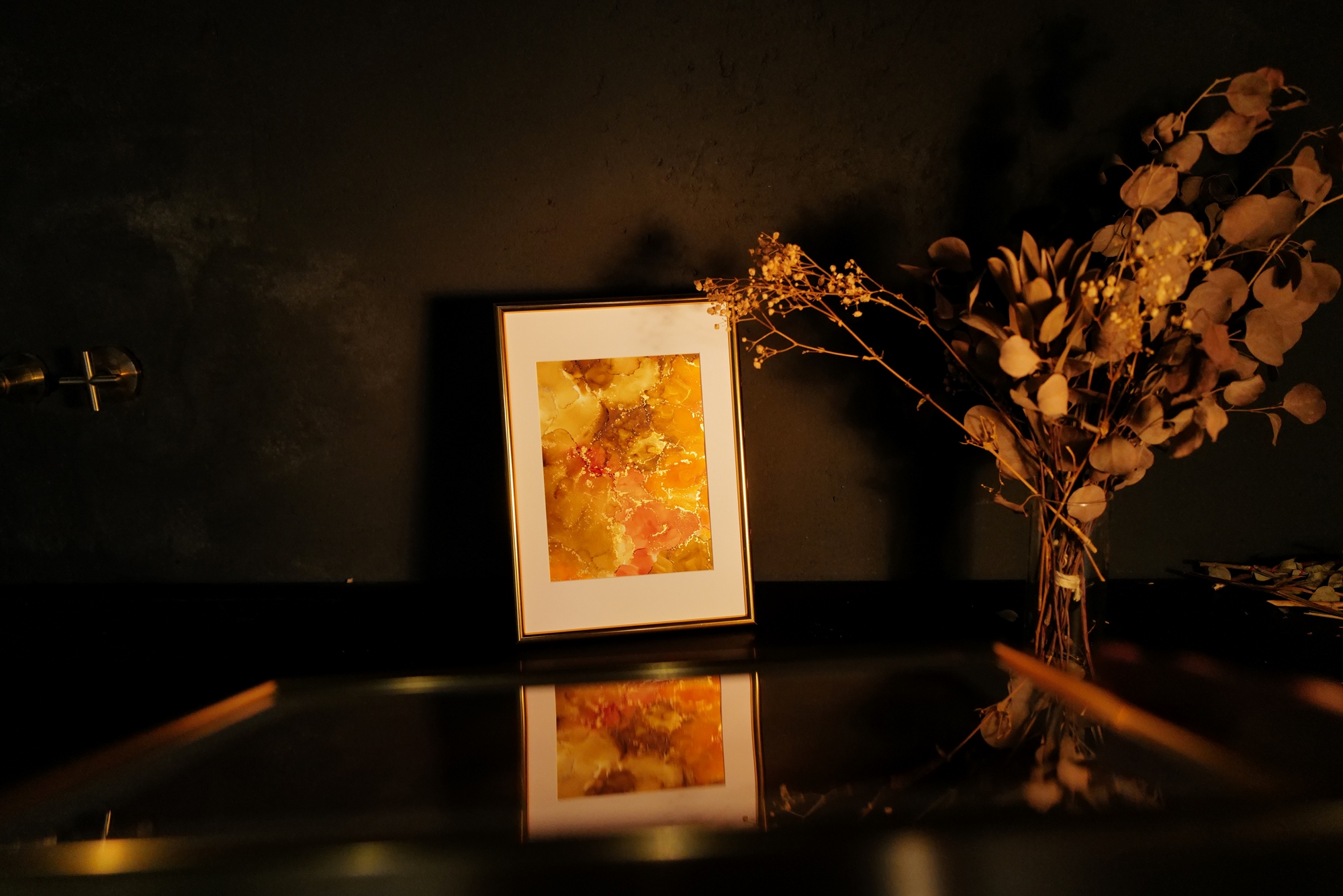- 成品:A4質感金色相框,酒精墨水畫一幅(下圖)