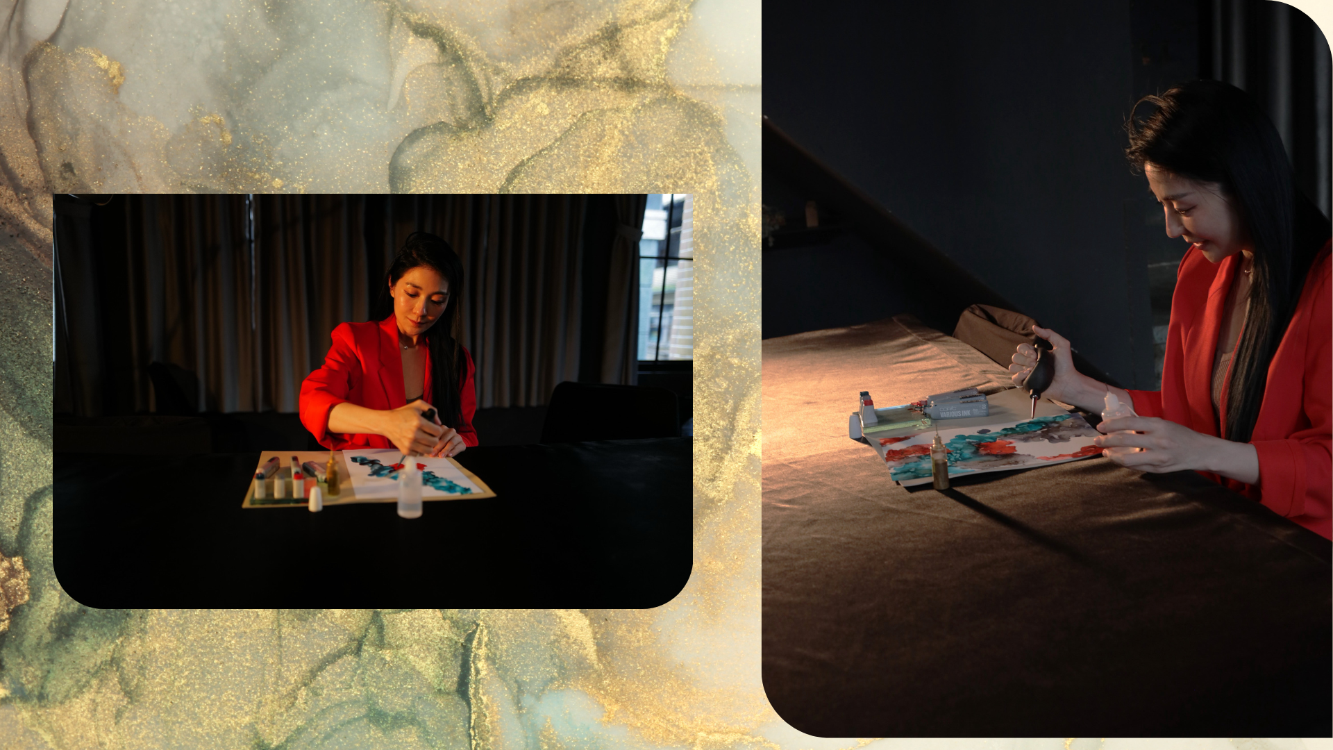 每一種色彩都蘊含著豐富的歷史文化內涵。Mokka老師帶您沉浸和創作出充滿古典韻味和獨特美感的藝術作品。酒精墨水畫利用酒精的特性,在不吸水的紙張上讓墨水暈染擴散,乾涸後凝結成美麗的線條與自然墨跡。