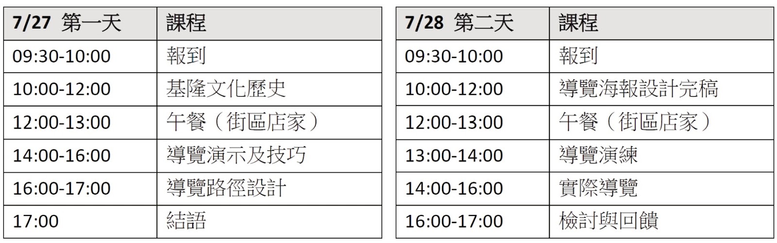 報到時間 | 7/27(六)早上9:30 | 7/28(日)早上9:30