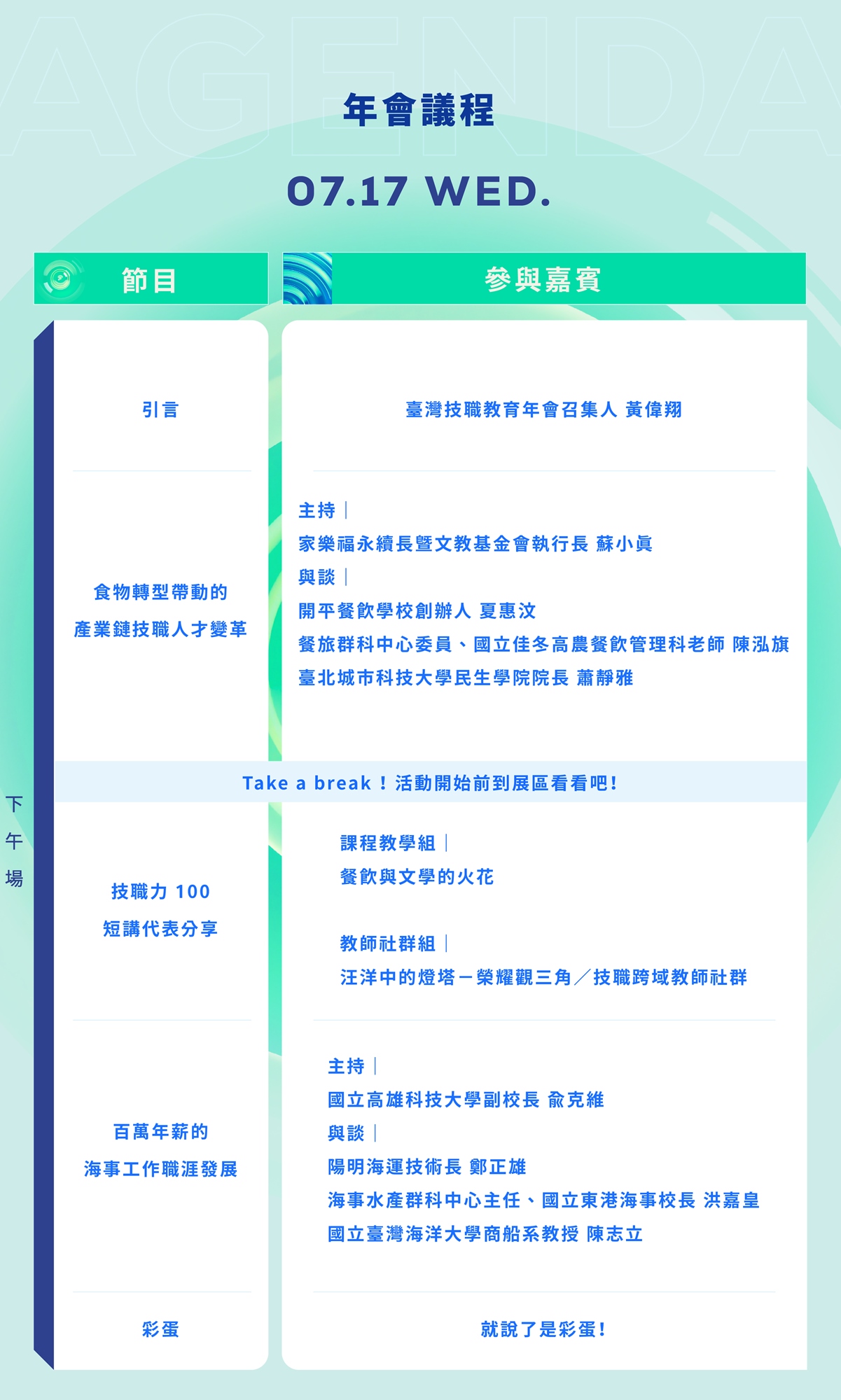 我們相信,具備彈性、多樣性、國際化以及能夠快速回應職場所需的技職教育,會是最佳的人才議題解決方案。在臺灣技職教育年會中,我們將能共同釐清產業與教育的彼此需求,思考未來一年,如何教學、找人才,讓技職學校成為臺灣產業邁向永續的人才庫。