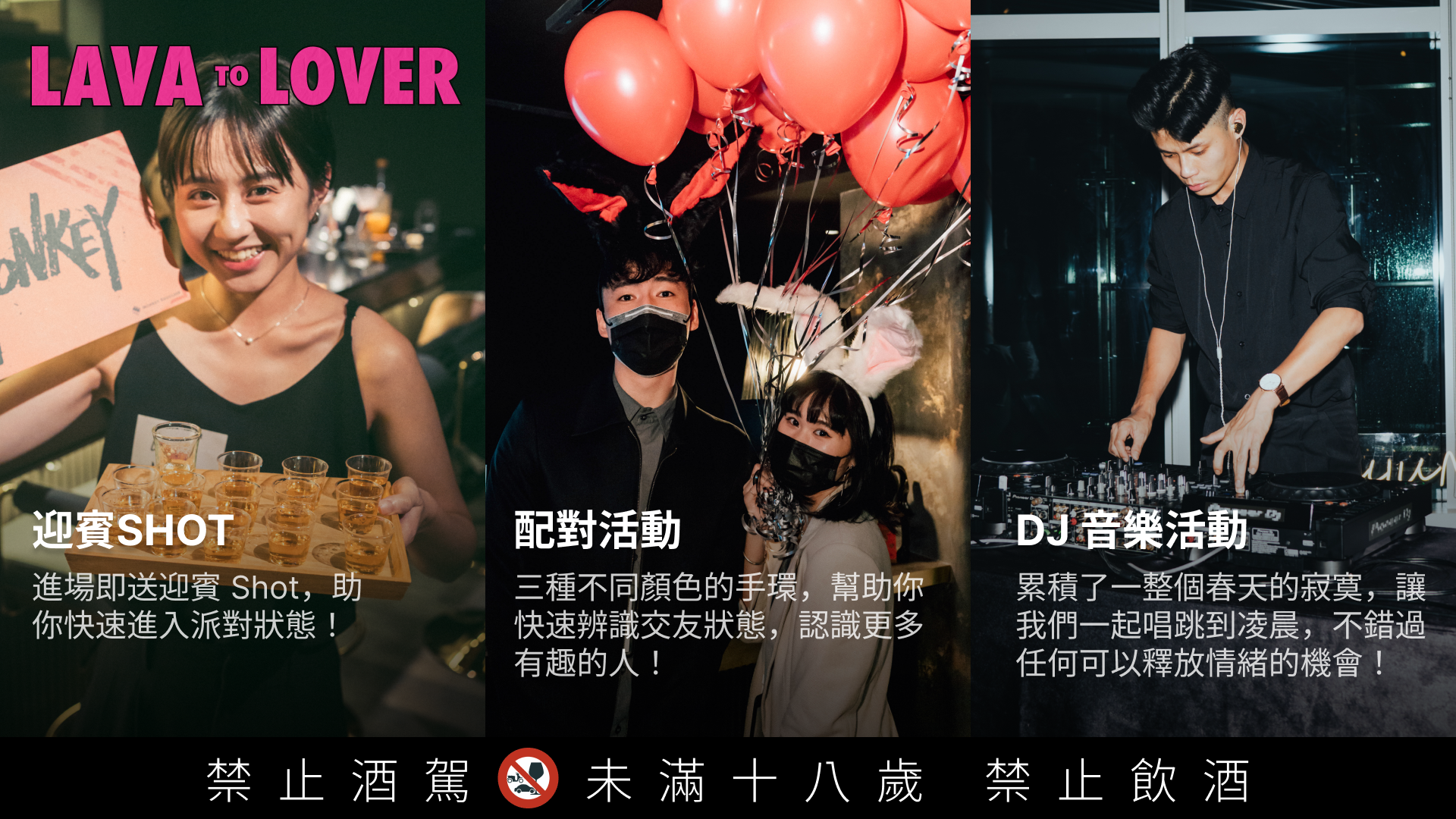 🎧DJ派對:誰都有可能會背叛你,唯獨音樂跟酒酒不會,讓DJ透過音符讓全場戀愛,不論是失戀還是熱戀中,讓音樂跟酒酒一路陪著你!