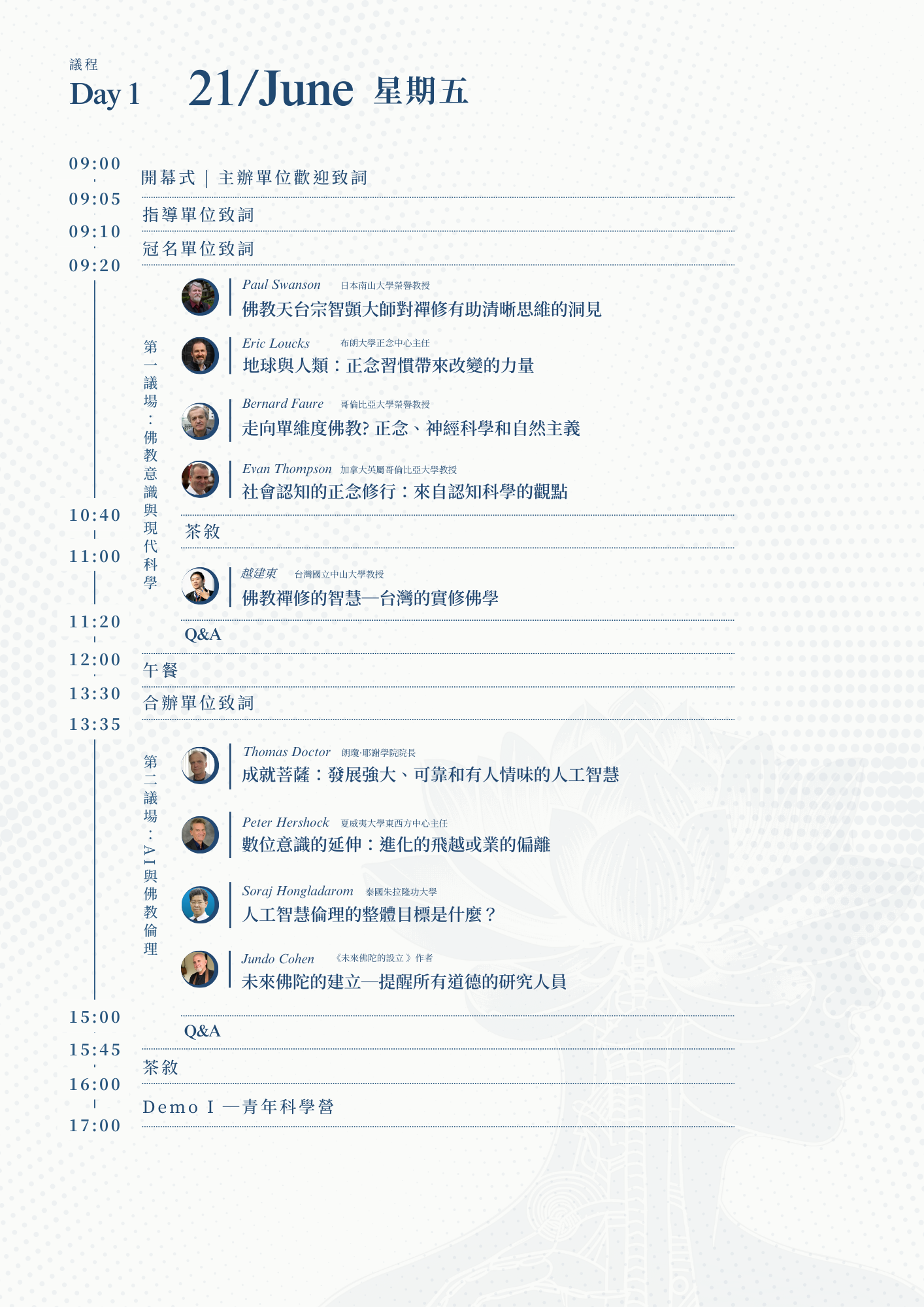 【與會貴賓】: 哈佛大學、麻省理工學院、柏克萊大學等高等學府教授、專家、實修者暨台灣教授、IT專家、佛學專家