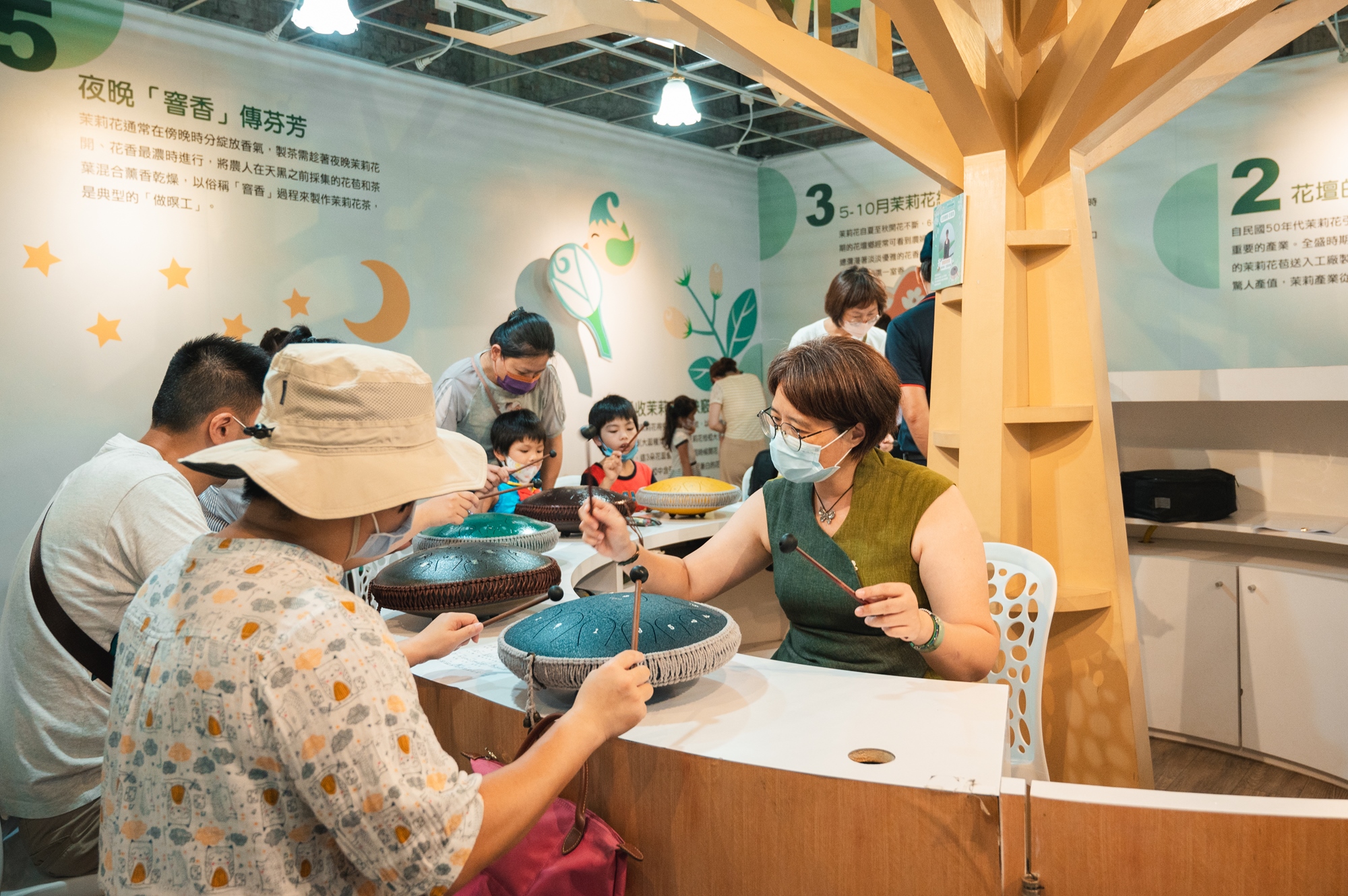 茉莉花茶x茉莉咖啡x空靈鼓敲奏x純露嗅香x茉莉絹印x深白色茉莉市集x兒童繪本說故事