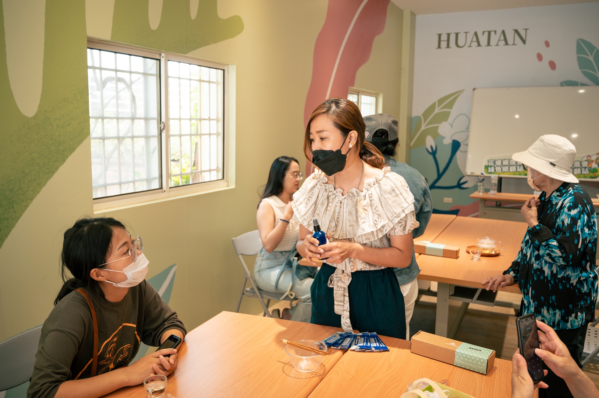 邀請芳療師,帶領民眾進行純露嗅香,感受花香的清新,介紹茉莉香氛對人體的好處,並學習簡易的按摩手法。