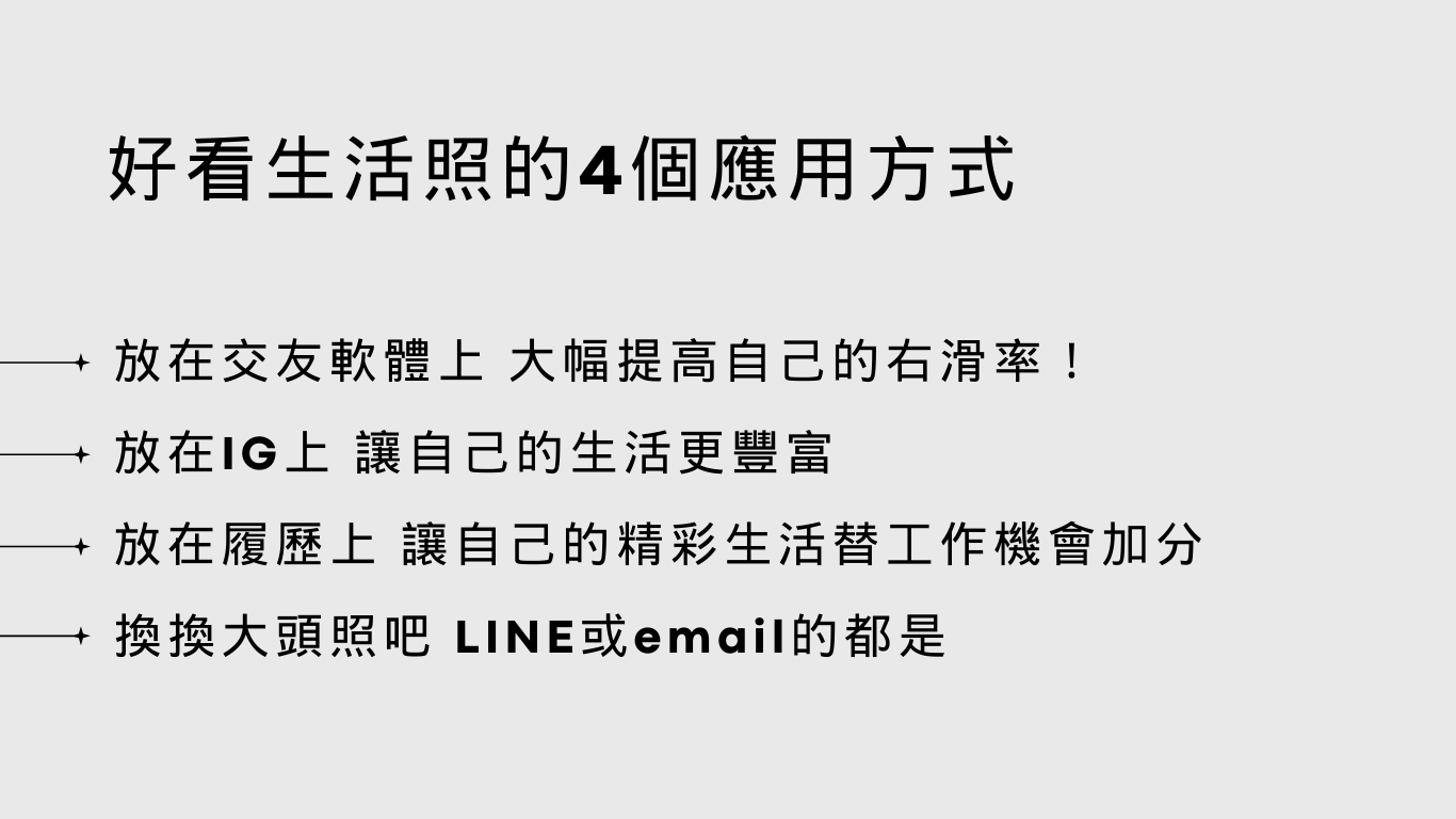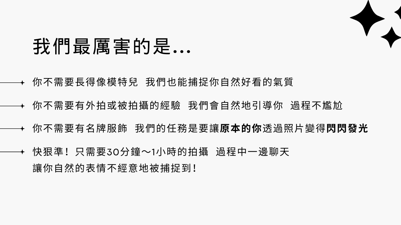 詳細拍攝地點將根據後續洽談後根據你的偏好決定
