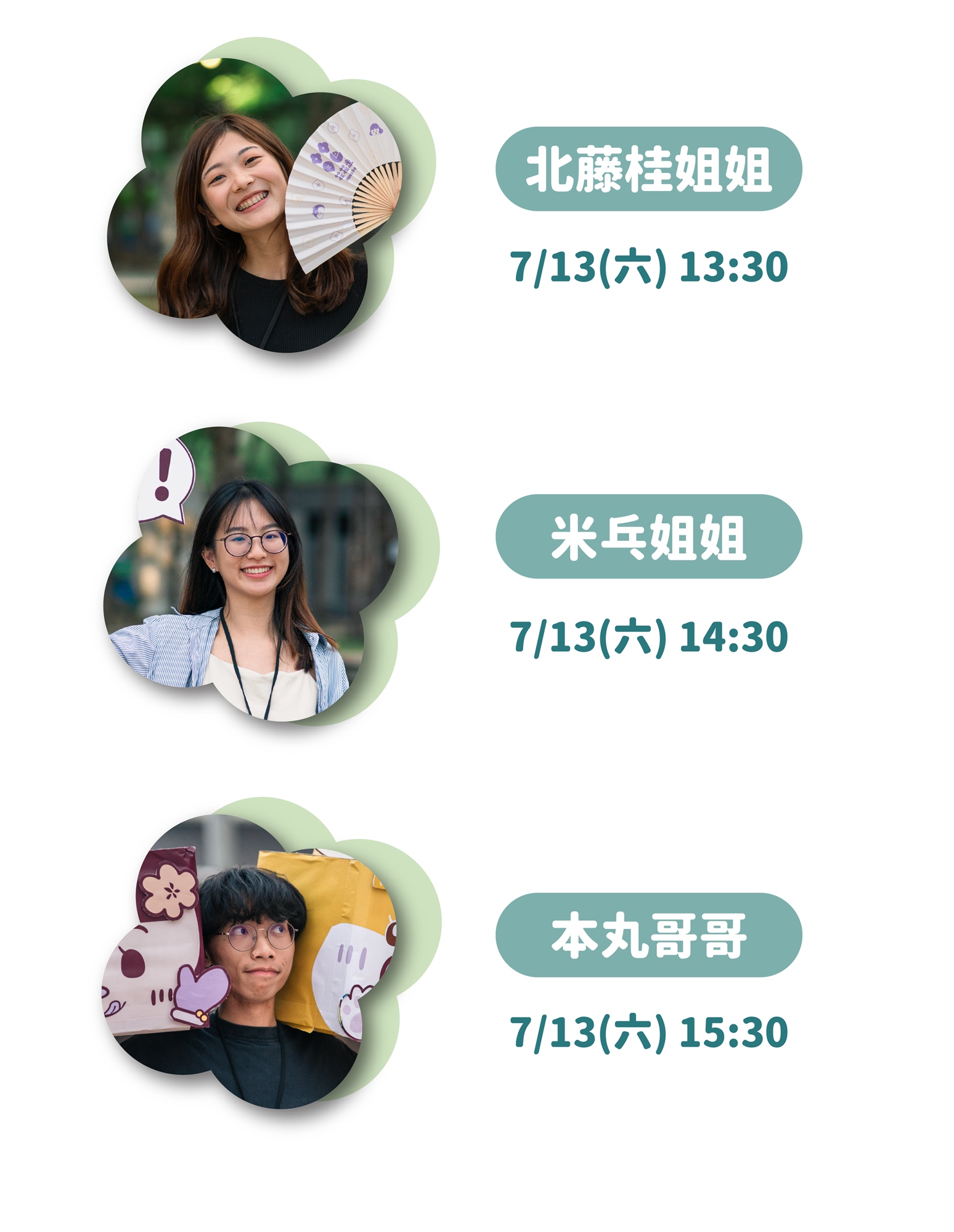 ● 場次:共3場次,每場約30分鐘