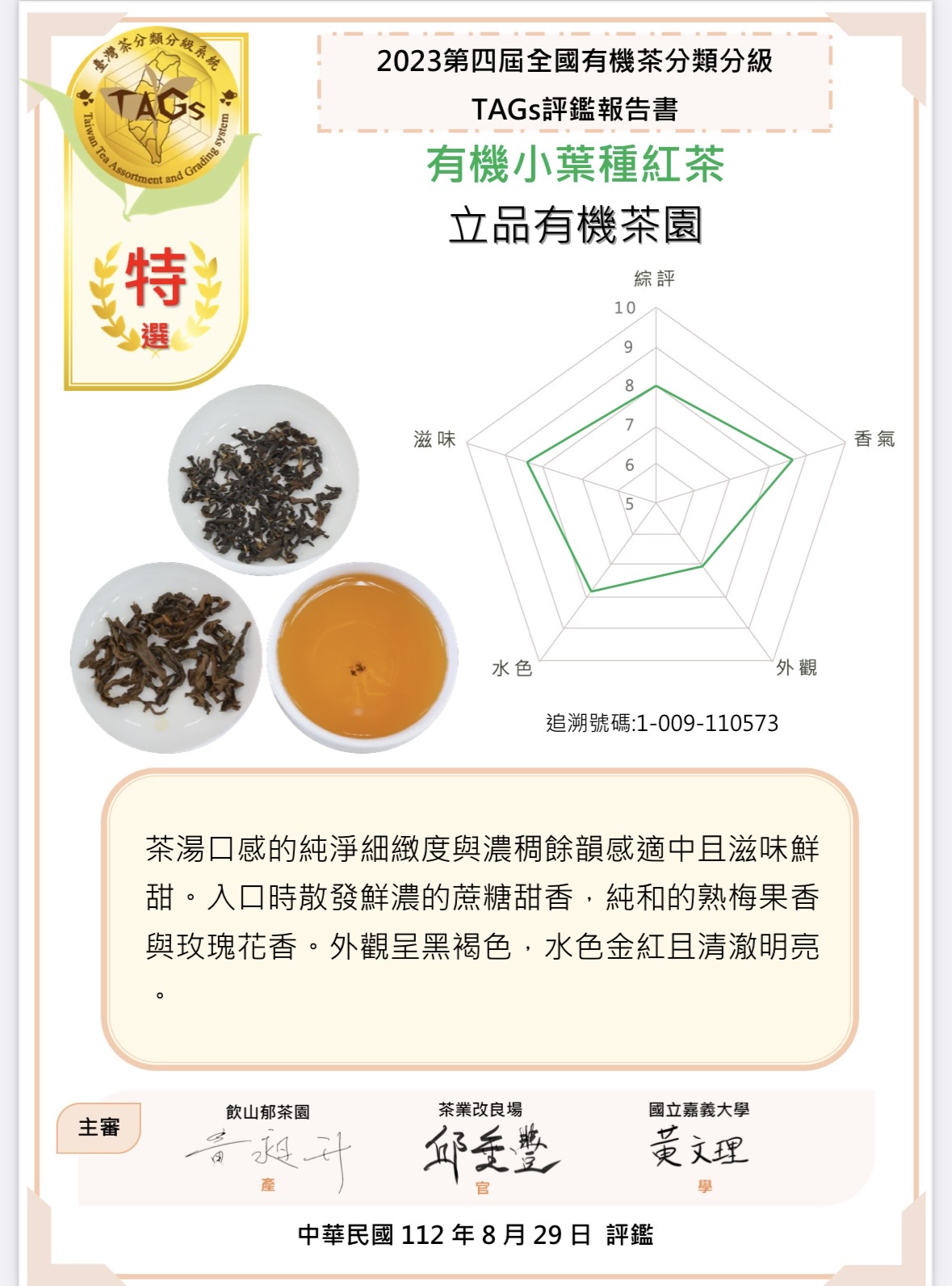 其中,小葉種紅茶-蜜香紅茶榮獲「特選有機茶比賽的金牌與銀牌」雙料獎項,