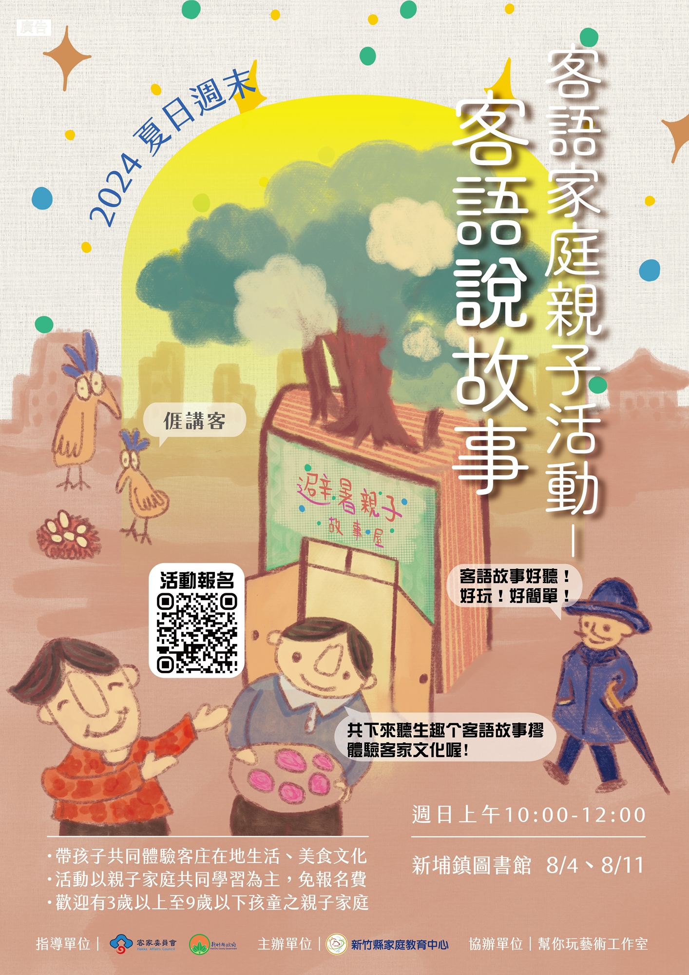 邀請家長帶著小朋友一起參與客語特色課程,學習傳統美食製作、客語歌童搖唱跳、認識傳統信仰等故事遊戲活動,來持續將客語帶到家庭當中,將客語融入生活,共度輕鬆有趣的歡樂親子時光。