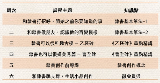 每週課程分為「書法乾貨(書法創作概念、歷史、心法等等)」及「作業精講」兩部分,