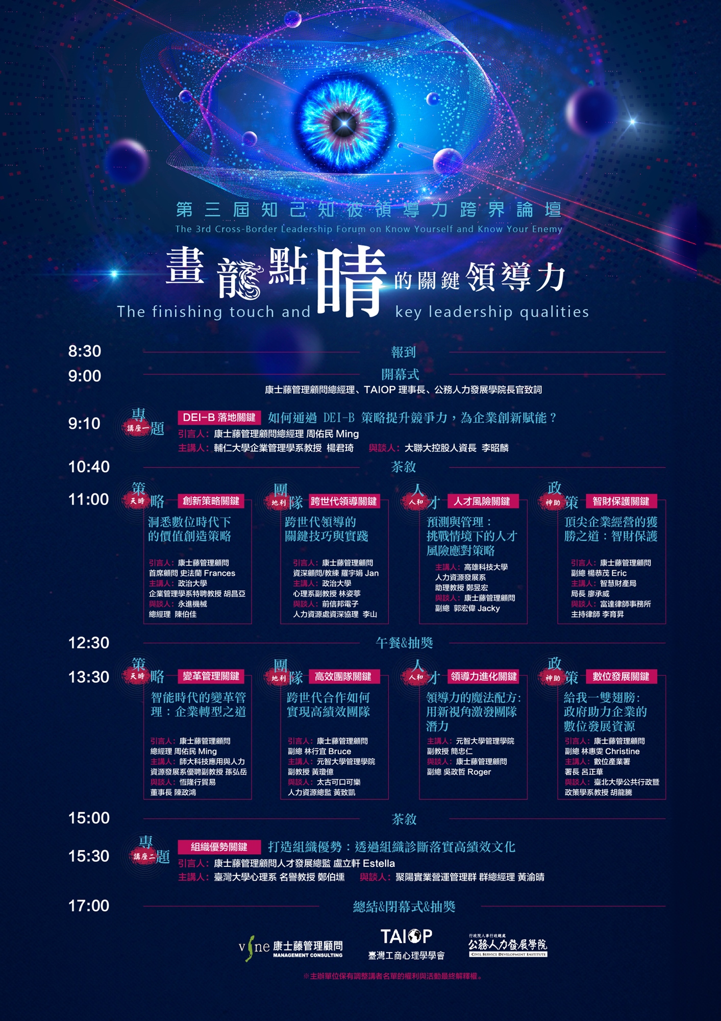 本次論壇共有 2 場專題講座和 4 個平行場次,從多角度探討領導力的核心要素: