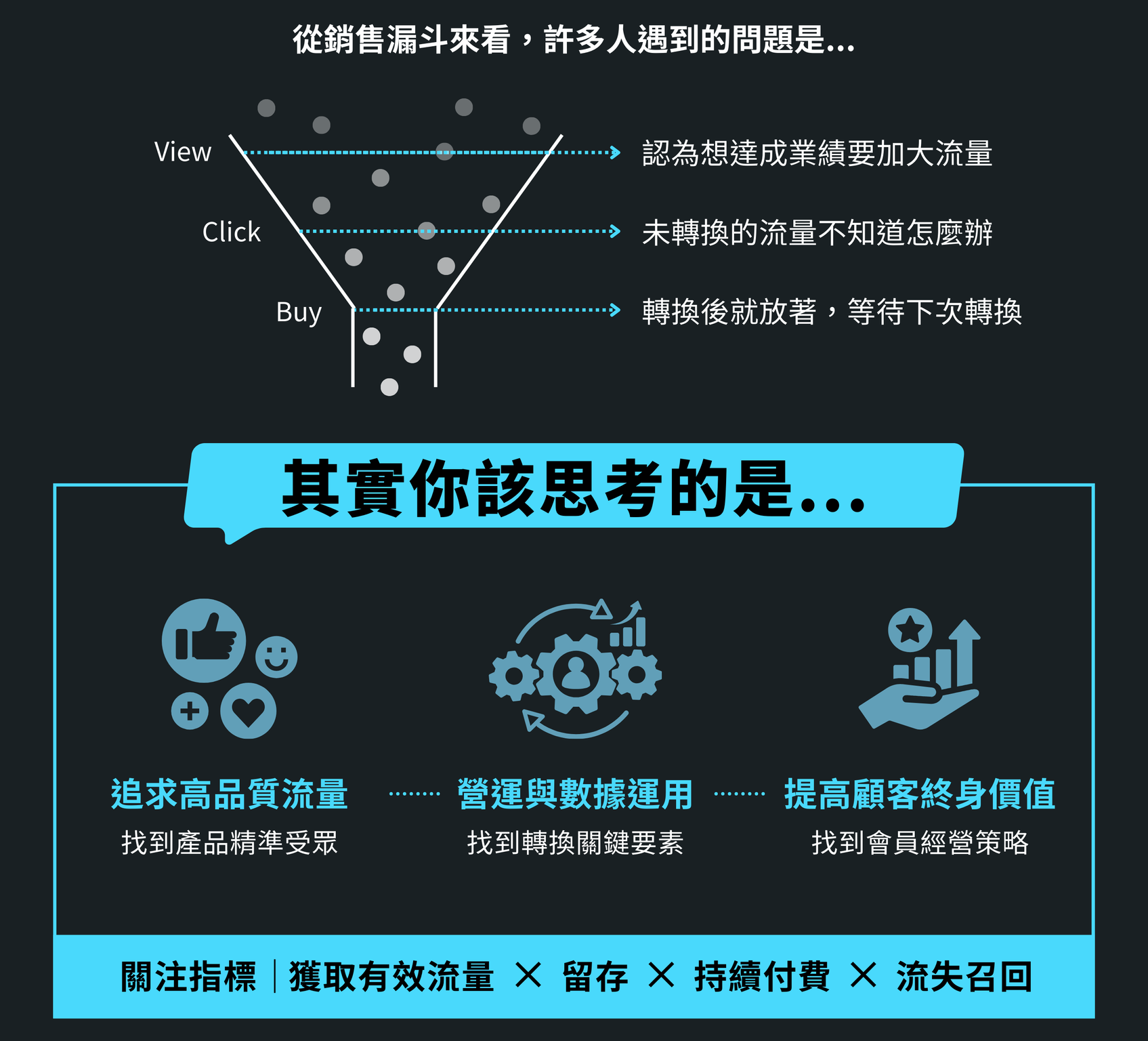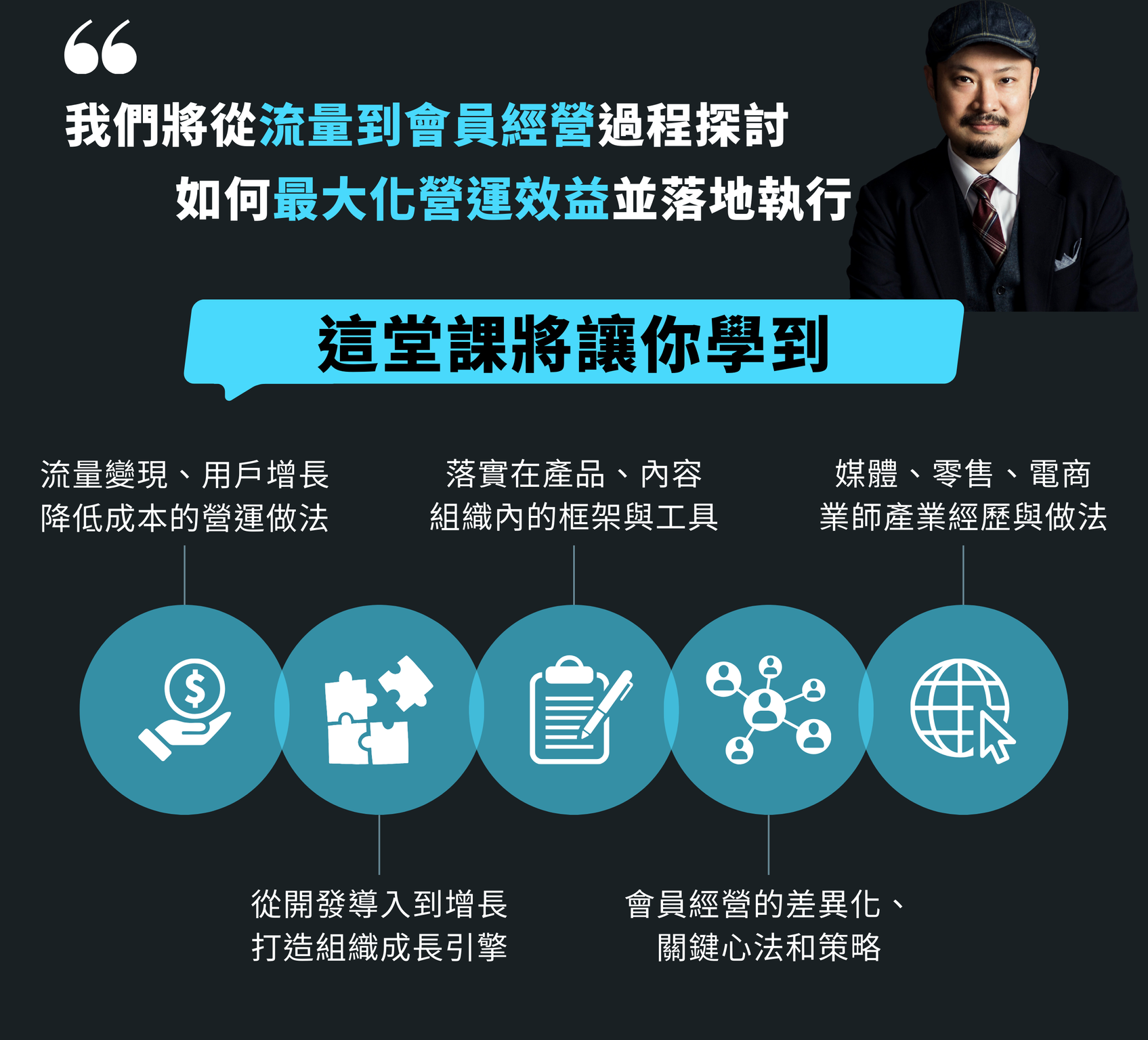 學會將網站流量、社群粉絲、會員、實體活動等,經營有效的流量池,實際達到用戶增長、訂單數等流量變現