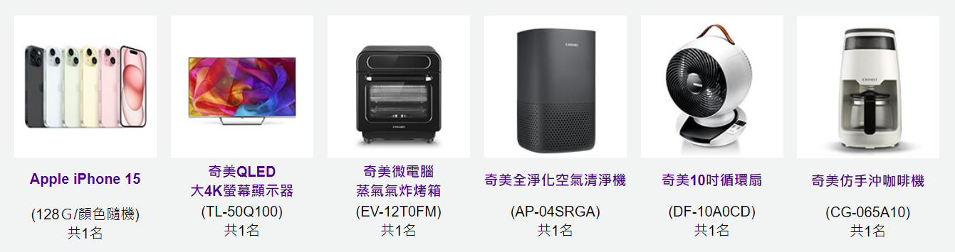 主辦單位將於2024/8/1(四)前寄出全部得獎獎品。