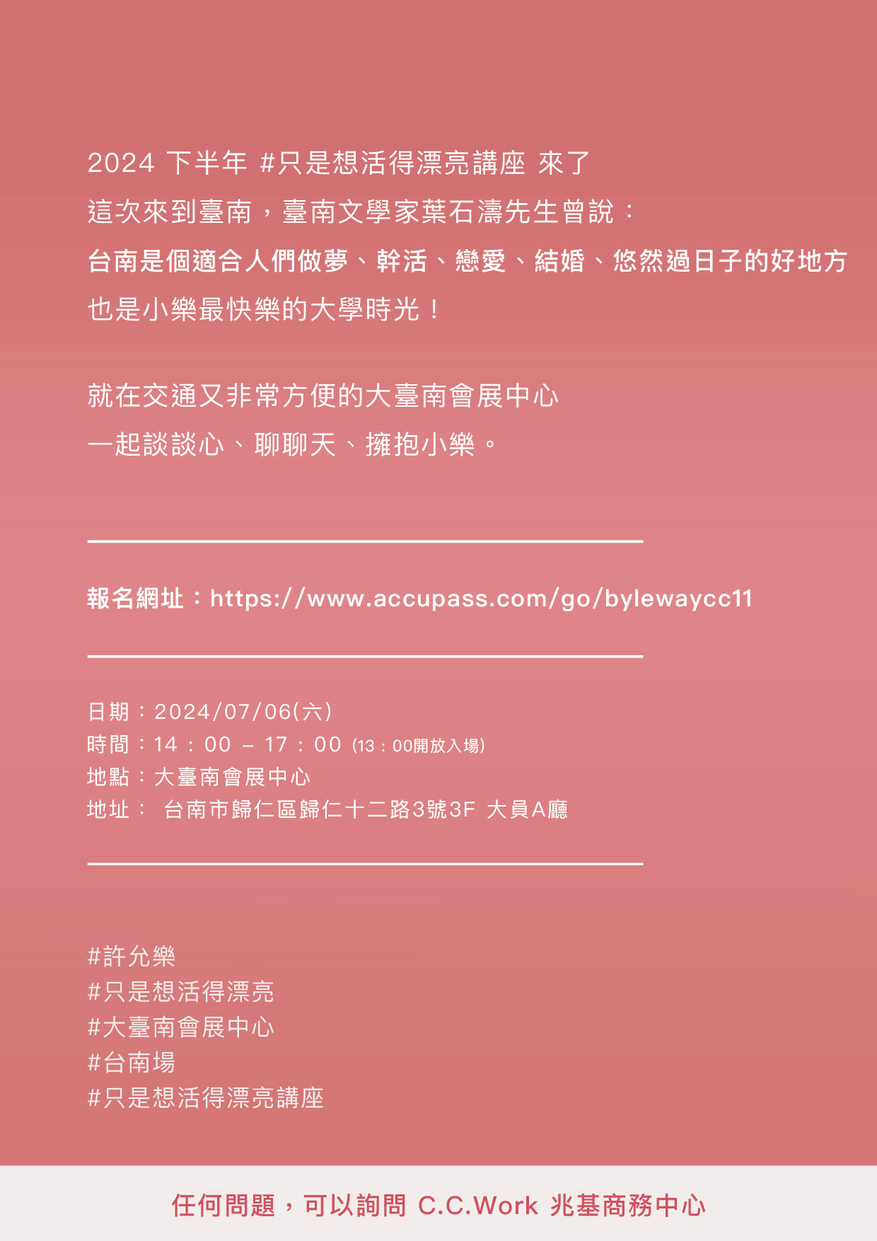 許允樂|只是想活得漂亮講座|2024 台南場|大臺南會展中心