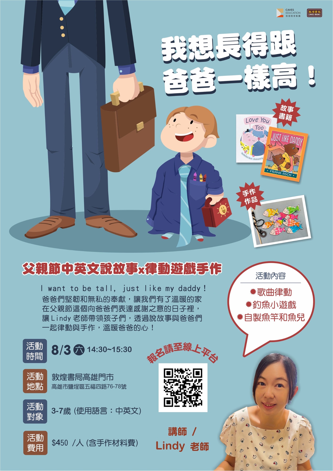 讓Lindy老師帶領孩子們,透過說故事、與爸爸們一起律動與手作,溫暖爸爸的心