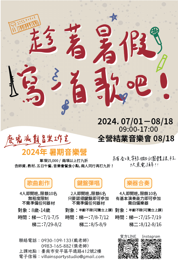 聯絡資訊:0930-109-133(戴老師)、0983-165-882(張老師)