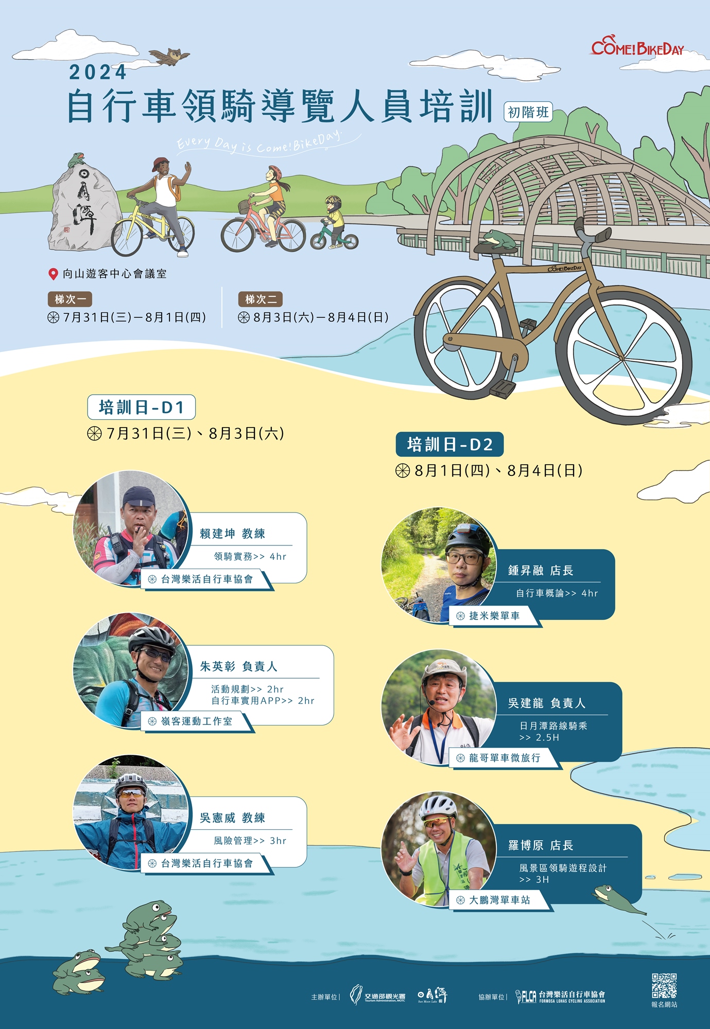 1530-1830 | 風景區領騎遊程設計 | 3hr | 1.領騎活動實務 2.遊程設計技巧 | 大鵬灣單車站 | |
