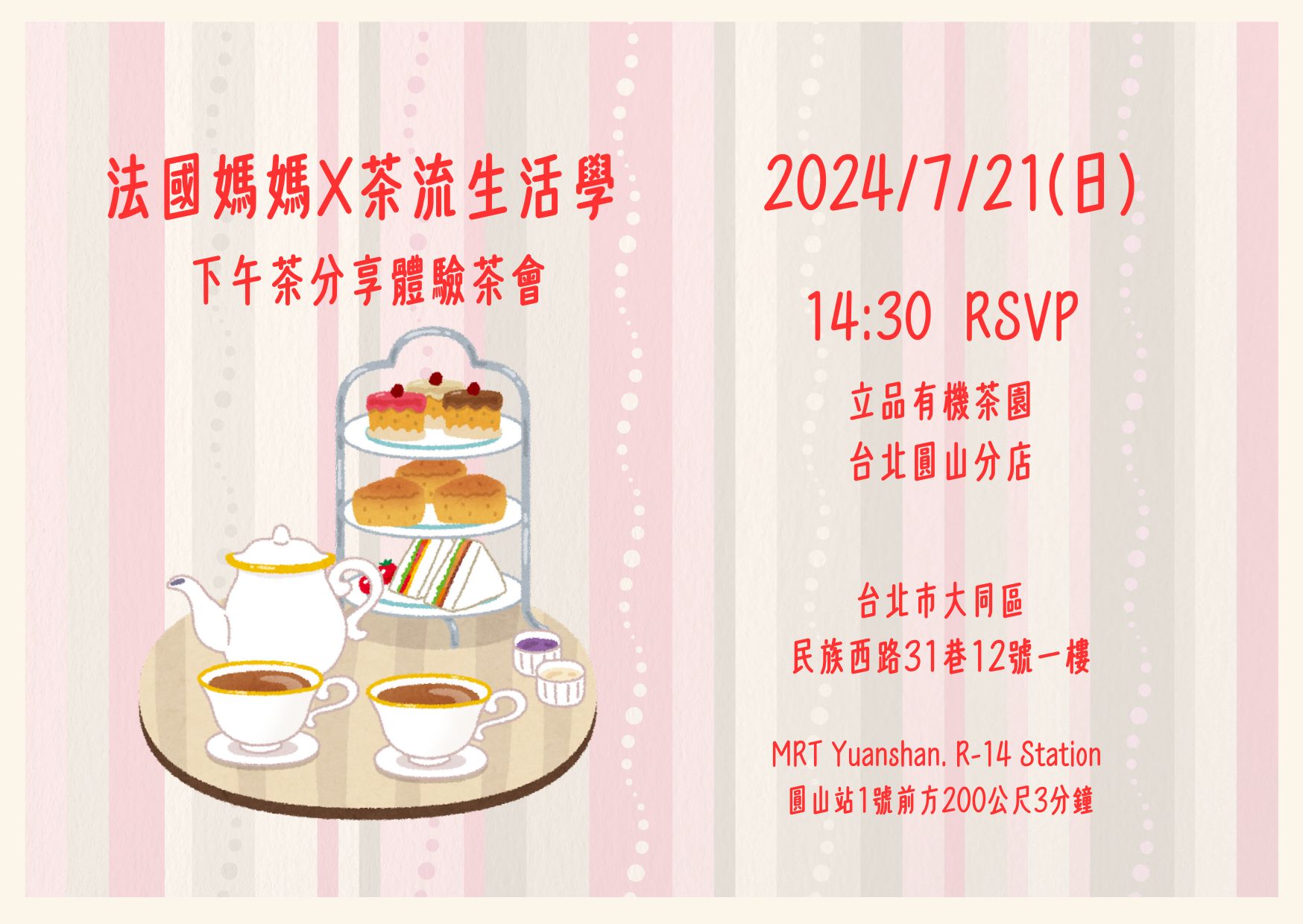 ◆ 參加活動每位享有茶點、現場茶飲、場含講義