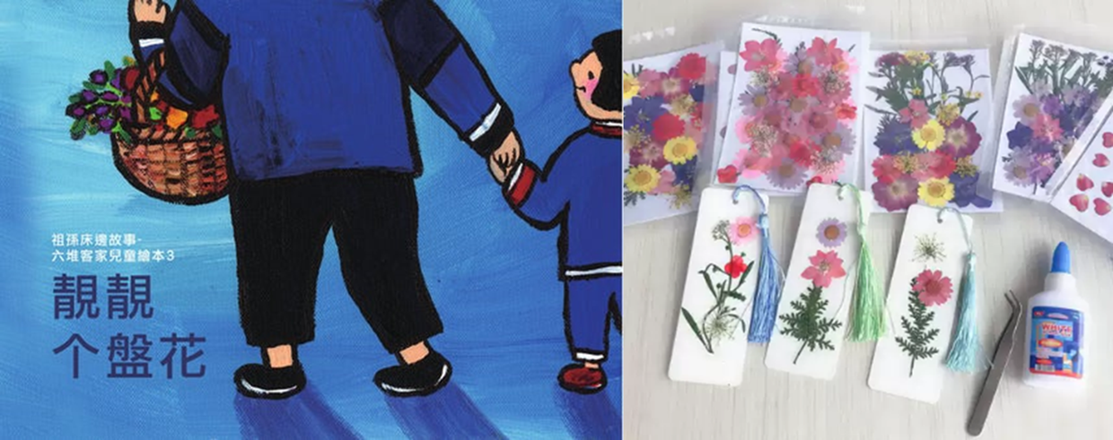 園仔項種盡多種花,阿婆會摘紅色个新丁花、像魚卵个樹蘭花、像圓粄樣仔个圓粄花、香香个玉蘭花同白花仔,還有青青个芙蓉。 阿婆摘个花,毋係愛拿來鼻香,用香花、茶、果敬奉,最重要个係誠心、誠意,佢無論多少 、無論大細,代表个係一份真心,希望神明、伯公來保佑大家事 事圓滿,大吉大利。