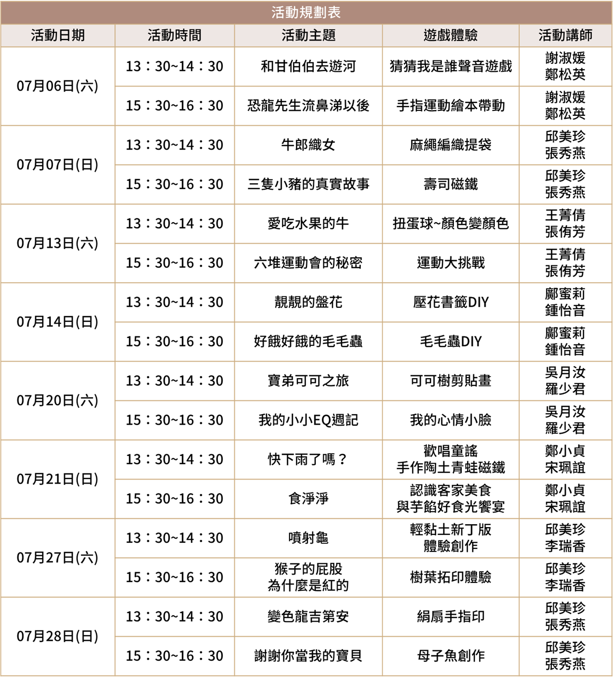 【活動日期】 2024年07月06日-07月28日(六、日)