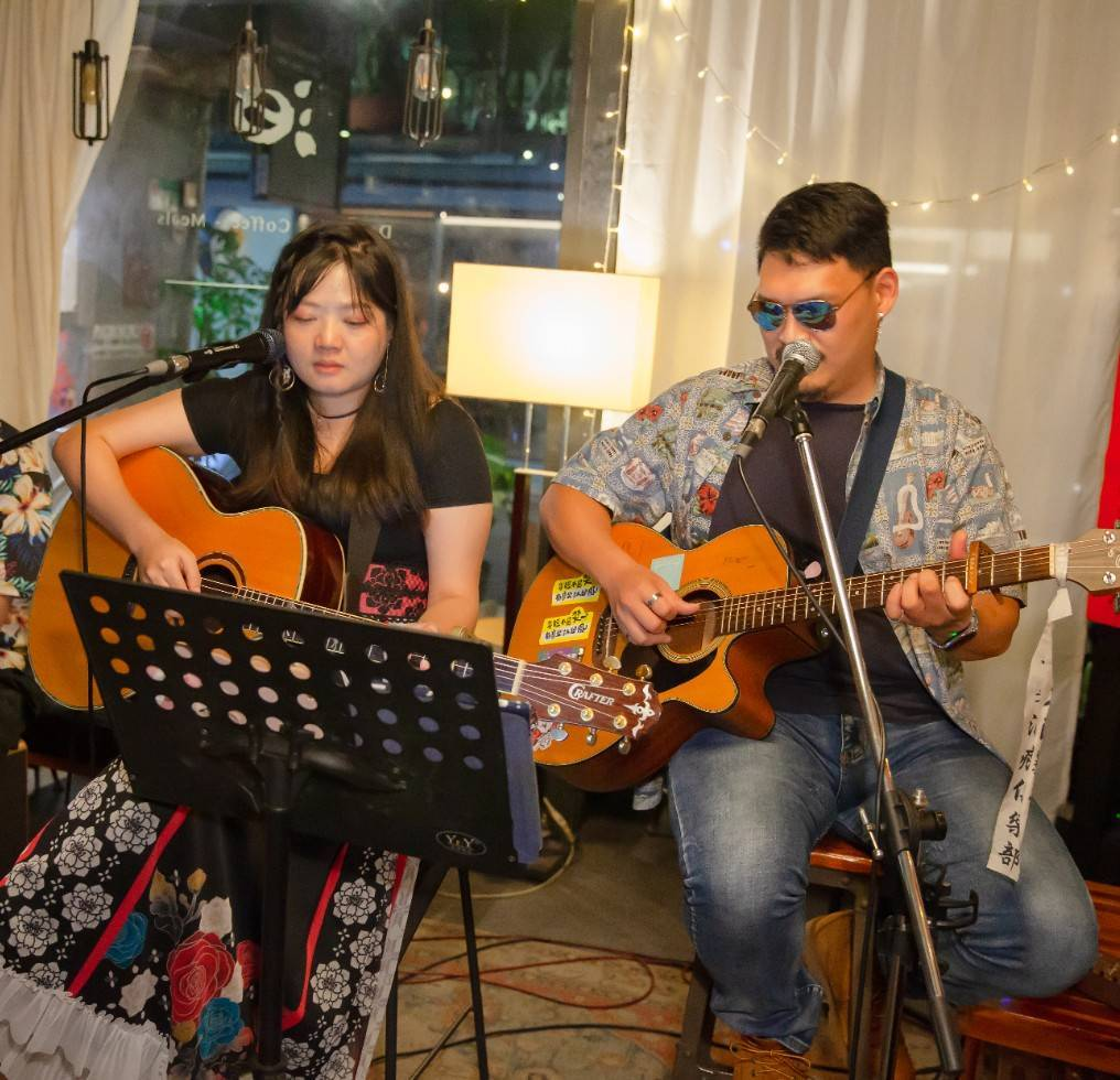 目前,我的音樂搭檔是吉他手阿元,我們一起組成了一個默契十足的表演組合。我擔任主唱,阿元負責吉他演奏。除了在各大場所駐唱流行歌曲外,我們也會舉辦一些創作演出,向觀眾展示我們自己的音樂作品。我在演唱時喜歡融入一些吼腔的技巧,這不僅能增強音樂的表現力,也時常會讓樂手們感到驚喜甚至有些吃驚 😱 (笑)。 這些年來,我們通過音樂結識了許多志同道合的朋友,獲得了無數難忘的經歷。我們希望通過每一次的演出,將最真摯的音樂帶給聽眾,讓大家能夠感受到我們的熱情和努力。我們會繼續創作更多動人的音樂,探索更多元的音樂風格,期待在音樂的道路上與大家一同成長。