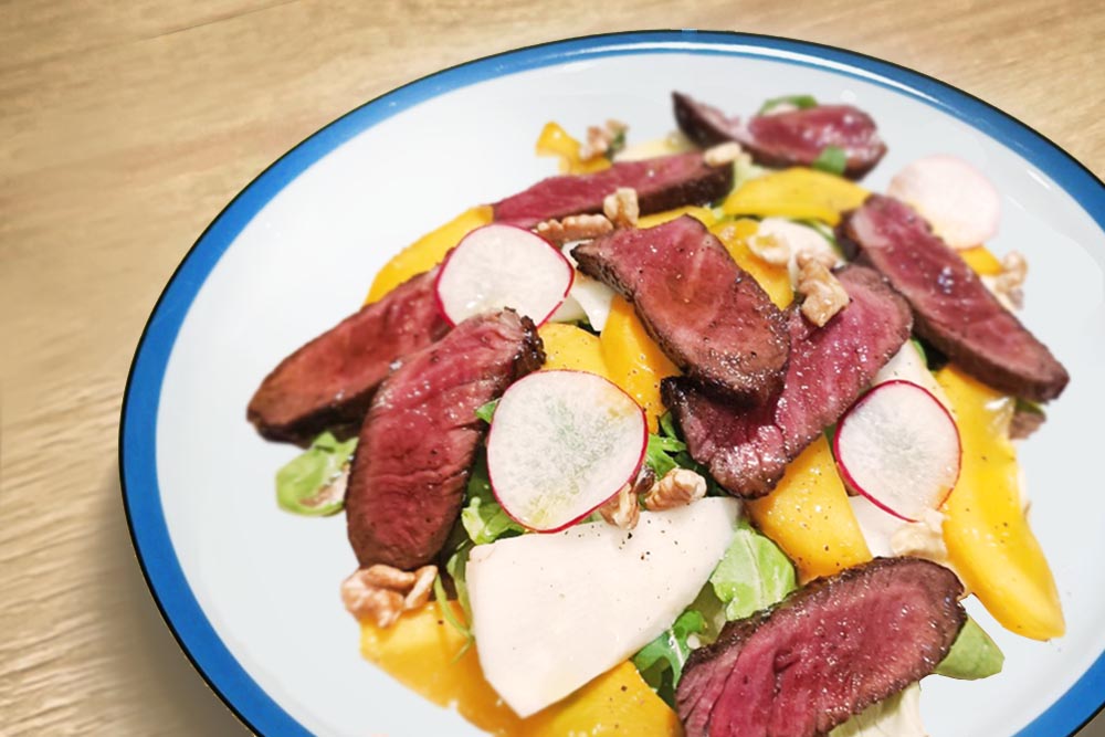 ▲燒烤台灣牛菲力|夏季芒果綠竹筍沙拉