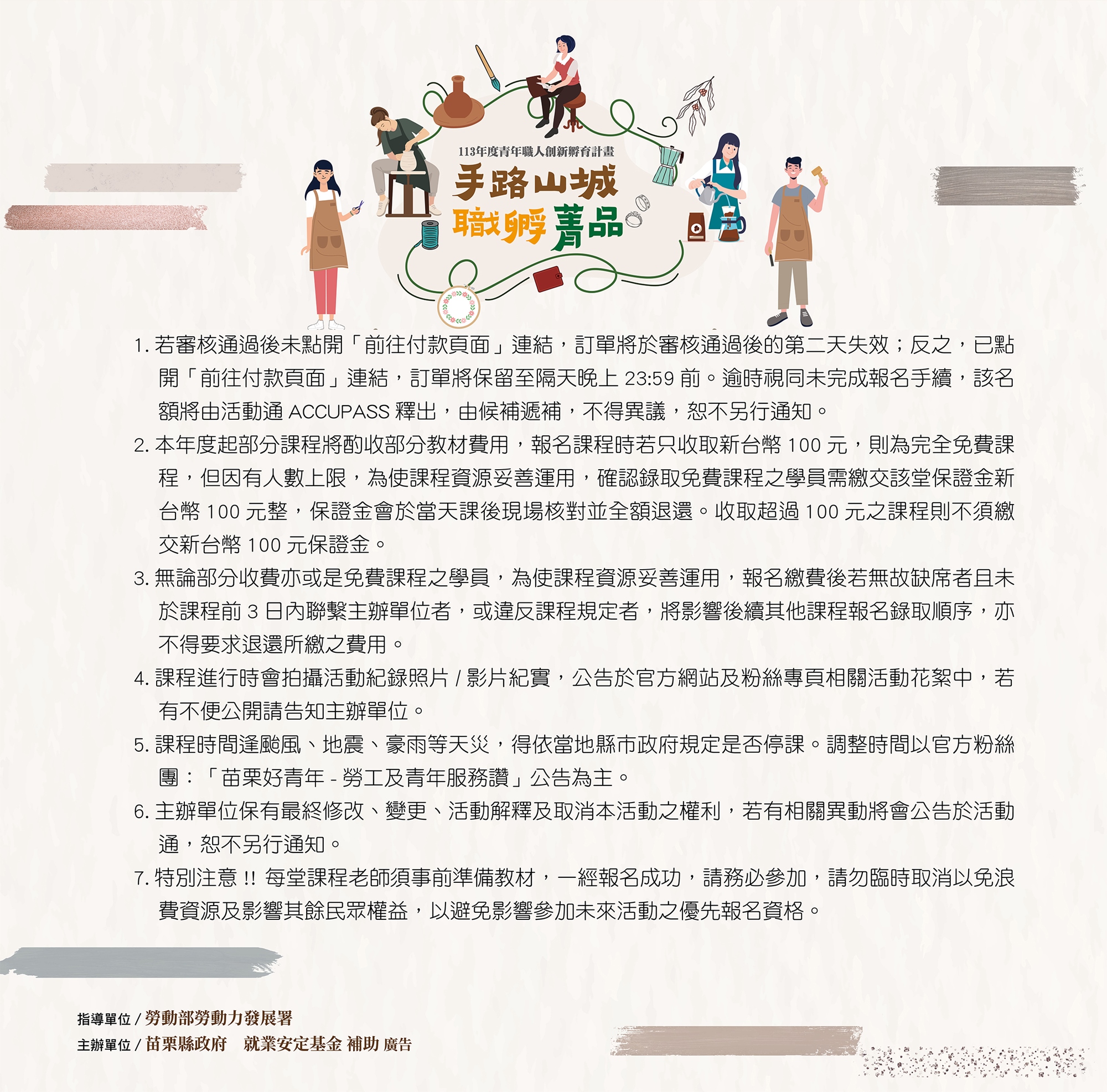 「113年苗栗縣青年職人創新孵育工作坊」課程與報名須知