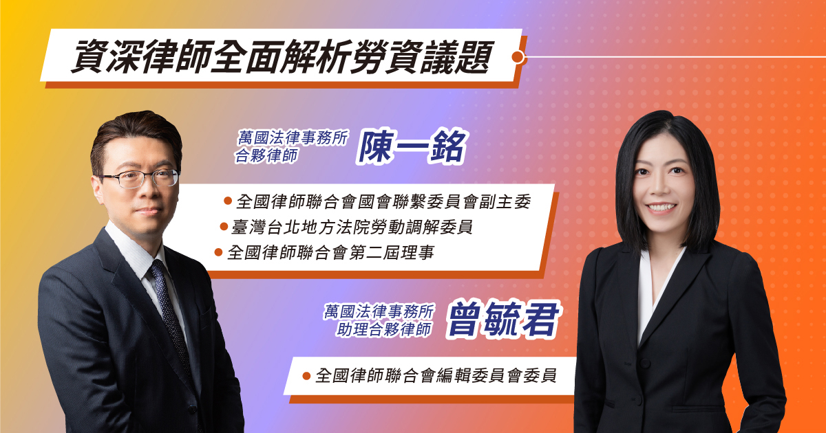 陳一銘律師目前為萬國法律事務所合夥律師,同時擔任台北地院、士林地院以及桃園地院之勞動調解委員,擁有多年實務經驗,專業領域為紛爭解決、公私協力、保密與競業。