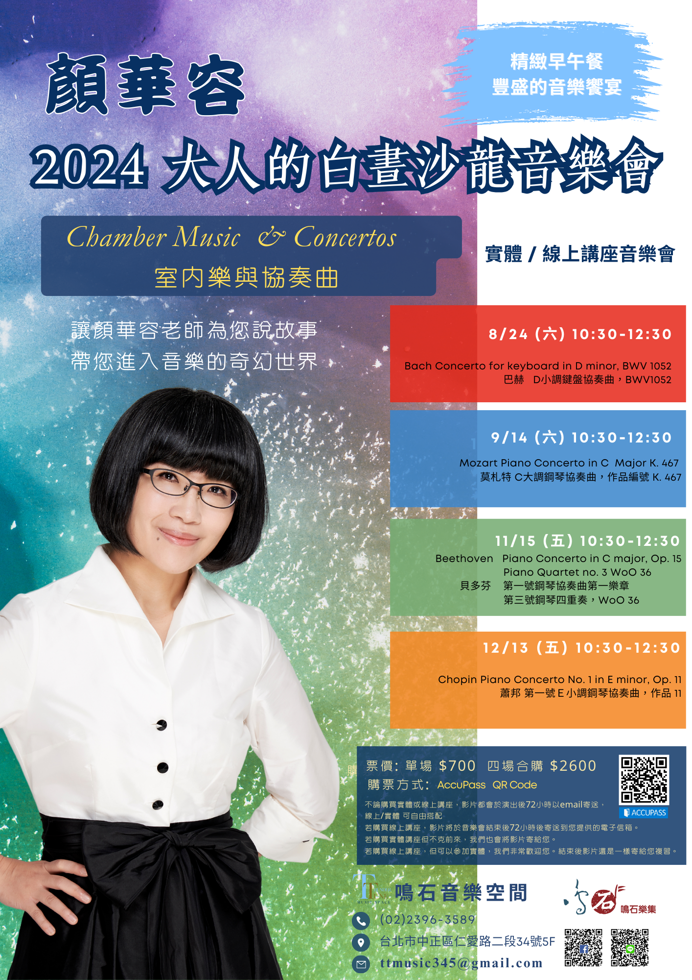 若購買線上講座,影片將於音樂會結束後72小時後寄送到您提供的電子信箱。