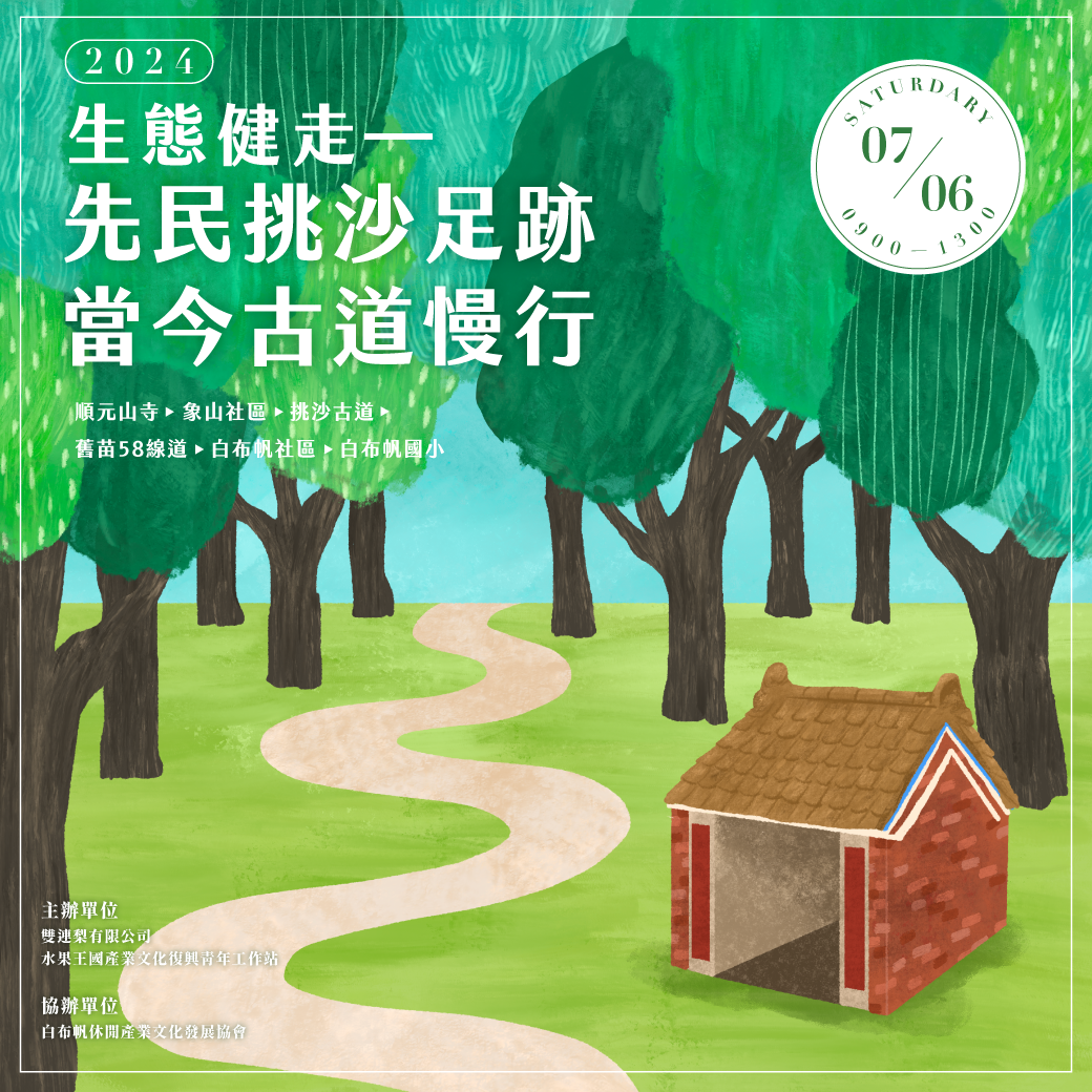 09:00-11:30 | 順元山寺(起點) → 象山社區 (伯公廟) → 挑沙古道 → 舊苗58線道 → 白布帆社區 |