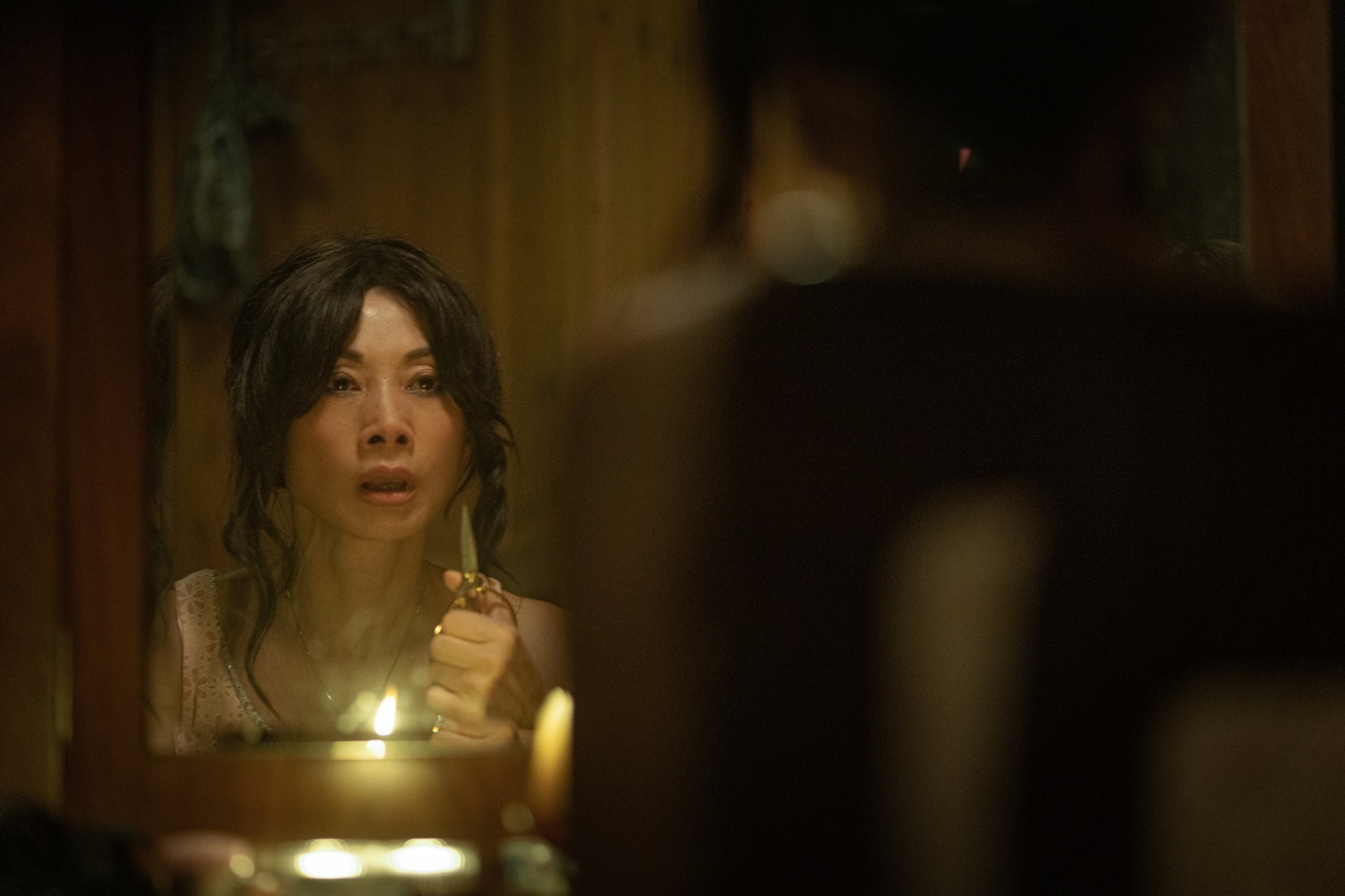我很喜歡這部電影的美術:陰暗舊大樓的布置、七樓詭譎的空間、母親的戲子裝扮、突然著火的小女孩、法會搭建與紙紮⋯⋯,究竟什麼是虛假?什麼是真實?給我們無限的想像。