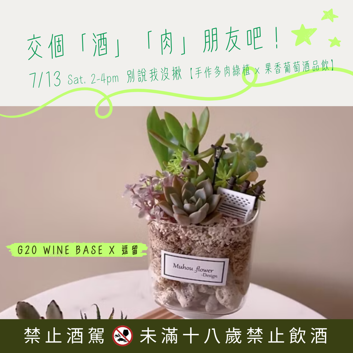 ※ 一人一券,憑券進場。課程中每位學員可完成1個「多肉綠植」、享用3杯果香葡萄酒。