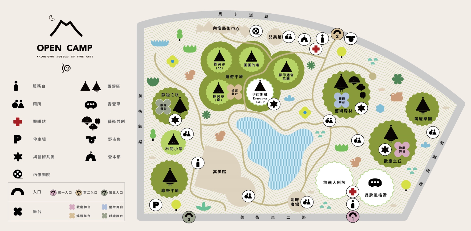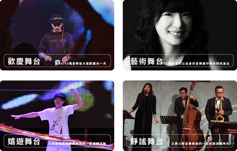 在美術館的草地林蔭中,讓藝術走進生活,園區中設置四大舞台 讓我們一起用美感帶來愉悅,透過身體力行來參與各種形態的藝術體驗。
