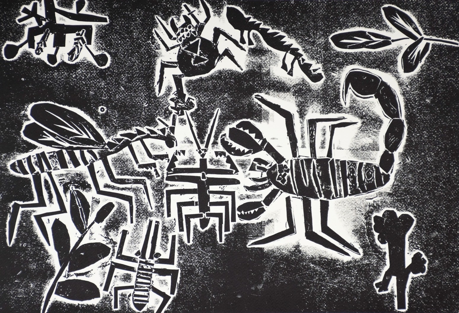 紙版畫以紙材為製版的材料,透過各式紙材裁剪、黏貼、裱貼製造肌理。由於紙材方便剪、刻、撕、貼、戳,上膠乾燥快速,剪刀、刀片等簡易工具,即可達到分割效果,進而將貼紙黏貼拼湊成凸板,是饒富趣味性與實驗性的版種。再運用版印技法在突起的貼紙部份以及底板滾上油墨,壓印至紙張上創作,一幅紋路自然,有調子肌理的作品即將誕生囉!