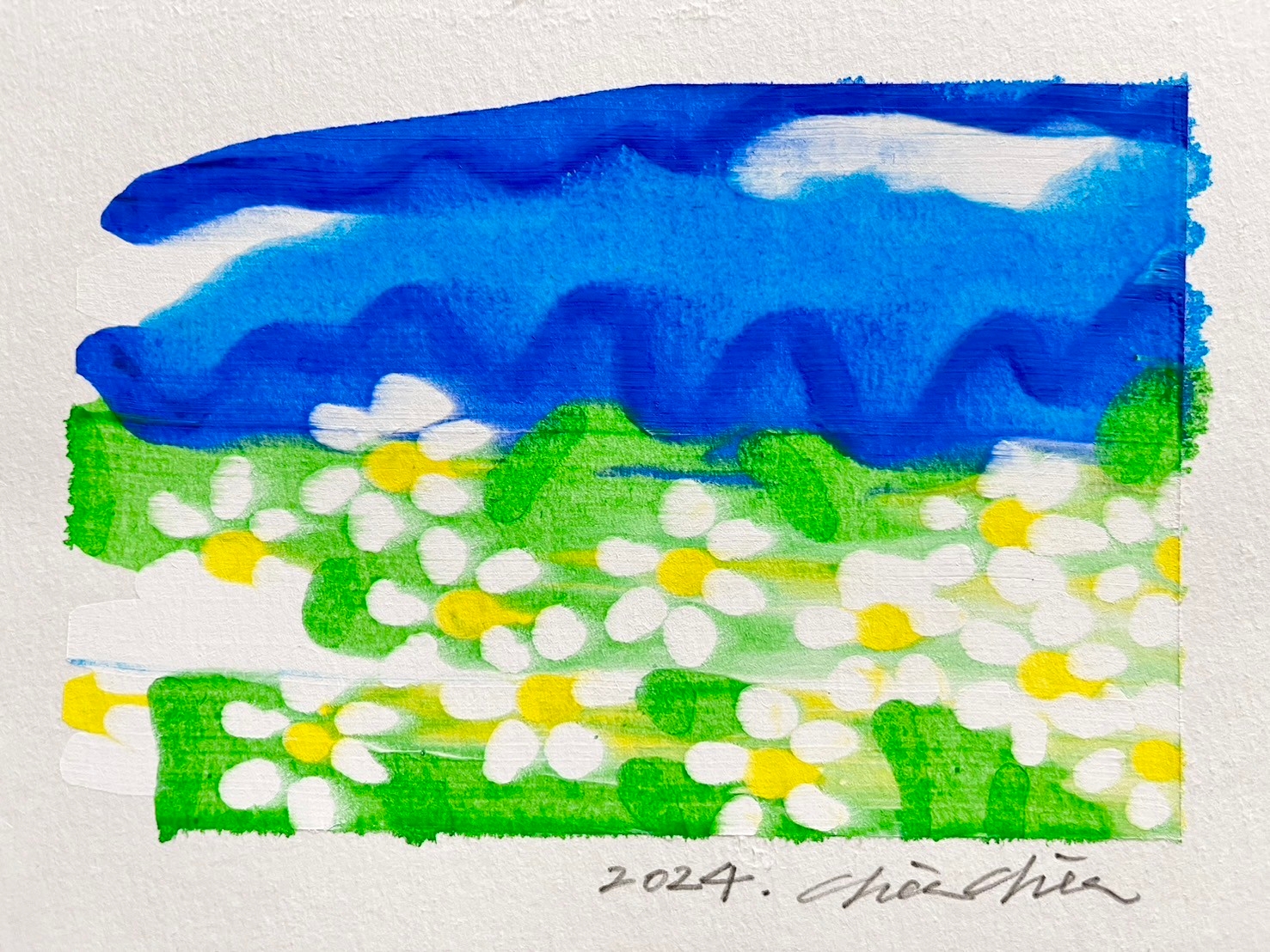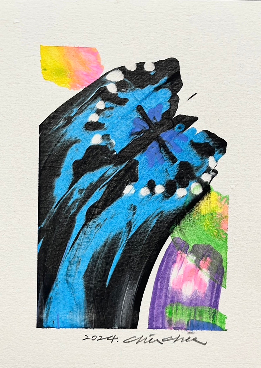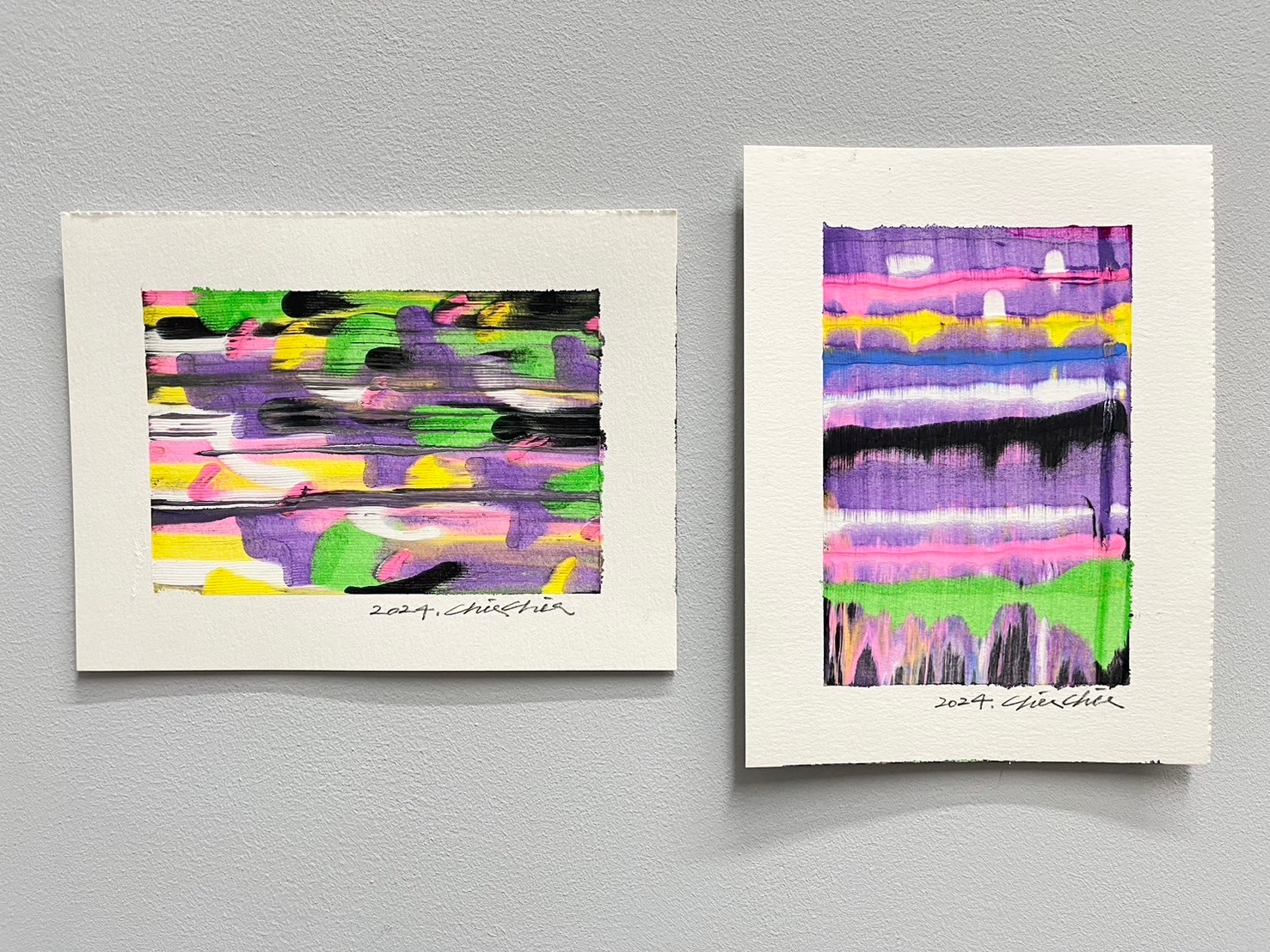 先點顏料、刮出面和線,再用簡單的方式體驗流動性技巧,畫面上不會出現具體的物體或形象,而是抽象帶出層次和空間感的肌理,將筆觸和線條細節減至最簡,使彩色更加突出,呈現各種縱橫交錯、高低不平、粗糙平滑的紋理變化。作畫過程表達我們對設計物表面紋理的感受,課程中可以享受創作的愉快樂趣,不需要有框架制約,即使完全沒有繪畫經驗也可以做出令人滿意的作品喔!