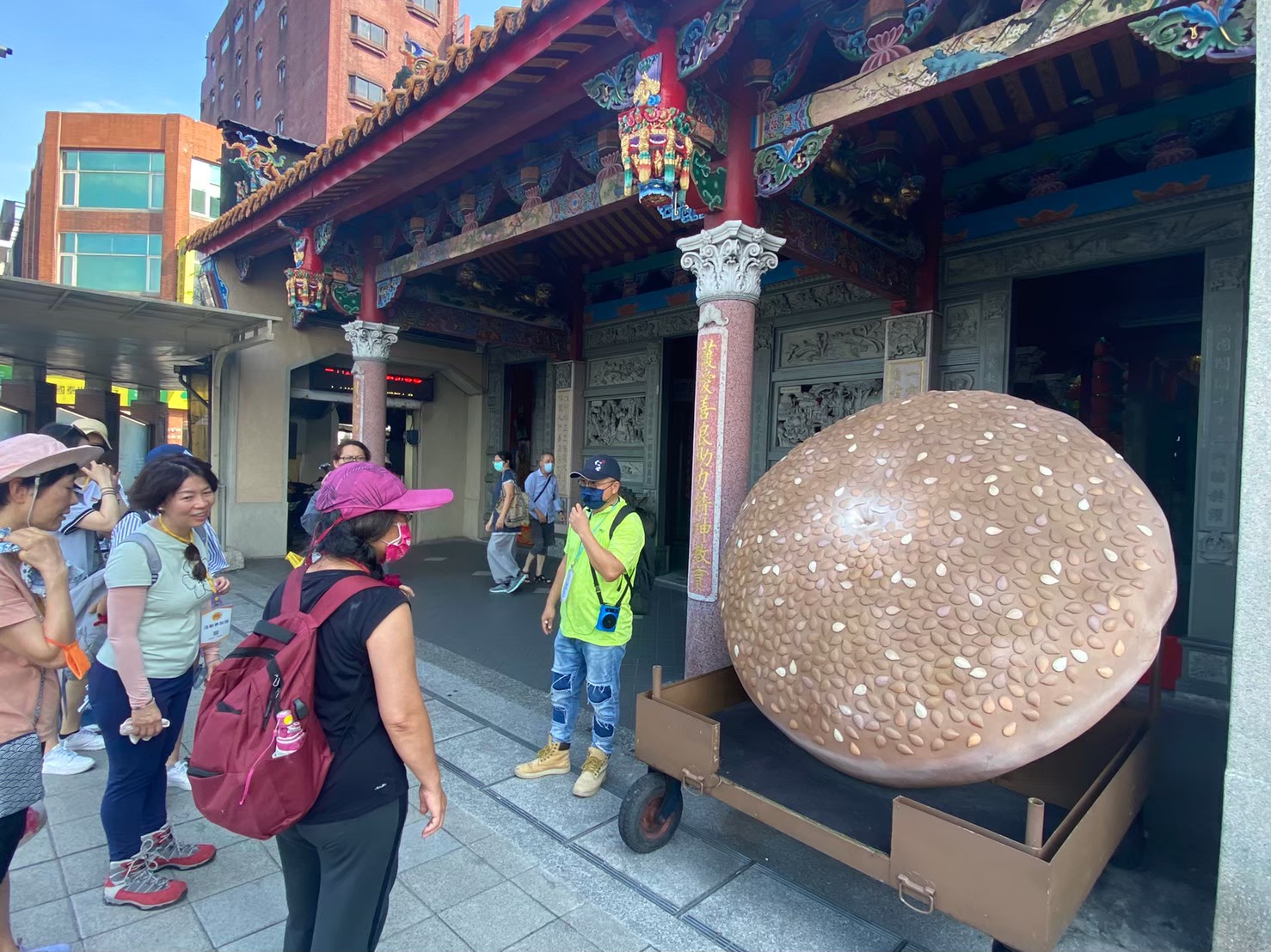 「基隆護國城隍廟」,超大的鹹光餅相當吸睛,廟方特意將此擺放在人來人往的走道,祝福眾人的意願可以說是相當明顯,也表現出城隍廟護國護民的決心,因為鹹光餅是廟會繞境時不可或缺的必需品,吃了之後有消災解厄保平安之意,因此它還有個相當可愛的暱稱,叫做「可以吃的平安符」,所以經過時,別忘了跟城隍爺說聲謝謝,因為世間最難得者,就此一祝福眾人的心意。